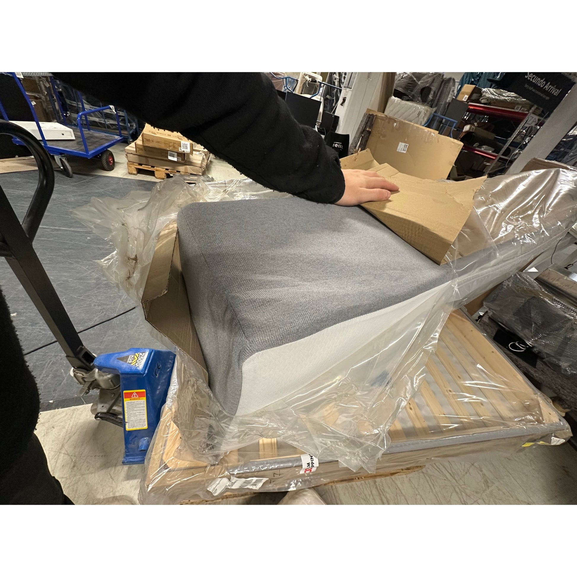 Sengen er i god tilstand, men vær oppmerksom på at den ene rammemadrassen har en knekt hjørne, noe som kan merkes ved trykk. Det kan også være noe skitt fra transport, men dette påvirker ikke den generelle kvaliteten. Dette er en praktisk og stilren seng som vil gi deg mange gode netter med søvn.