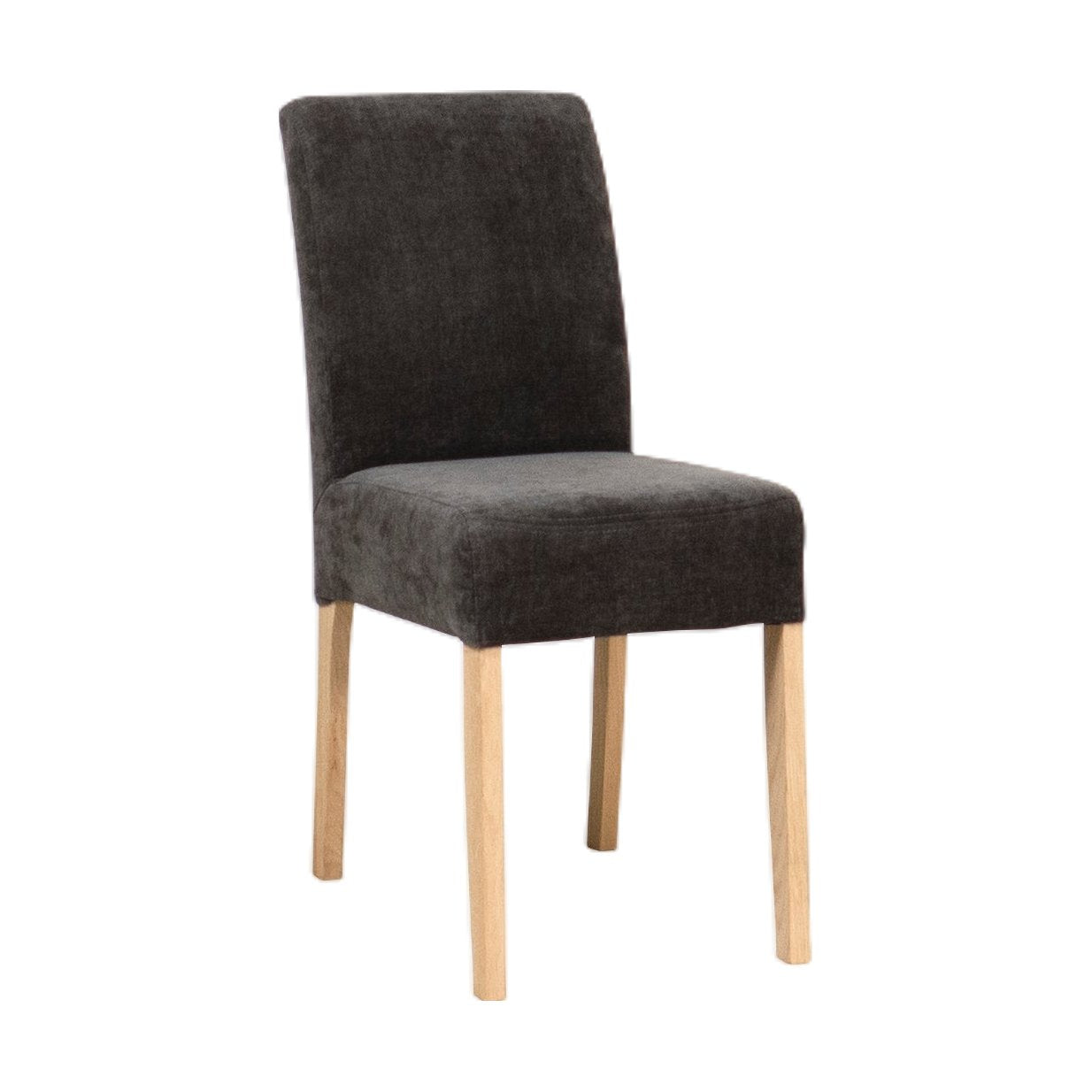 Klassisk og stilren spisestol fra A-Møbler, modell Nowe, designet for å gi høy sittekomfort. Stolen har lav rygg og er kledd i mykt, grått stoff (Danny), som gir et tidløst preg til ethvert spisestue.