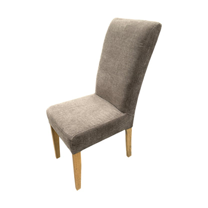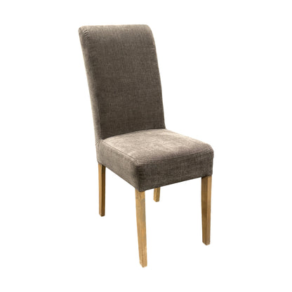 Stilig spisestol fra A-Møbler med høy rygg i klassisk mykt stoff. Stolen tilbyr en imponerende sittekomfort og passer perfekt til en rekke spisebord, noe som gjør den til et flott valg for ethvert hjem.
