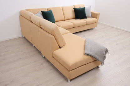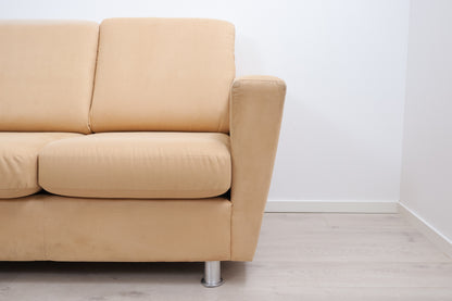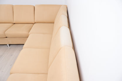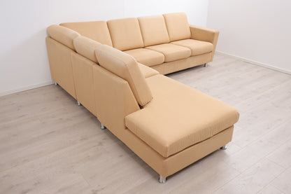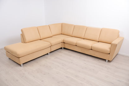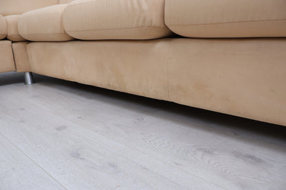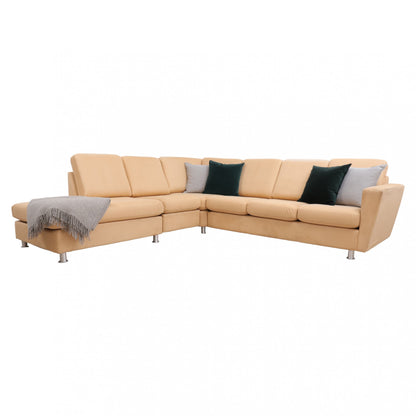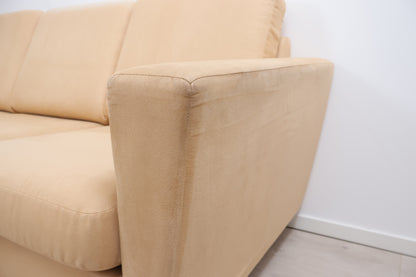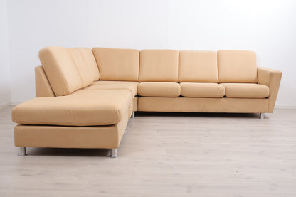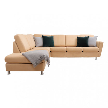 Nyrenset | Beige/brun hjørnesofa med åpen ende i semsket skinn