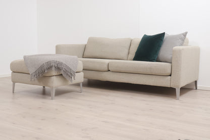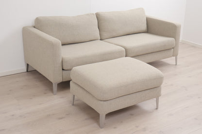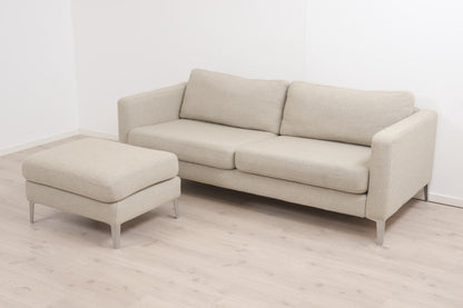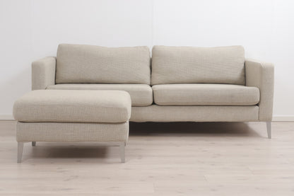 Nyrenset | Beige IKEA Karlstad 3-seter sofa med puff