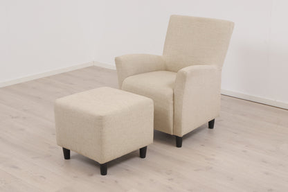Nyrenset | Beige lenestol med fotskammel