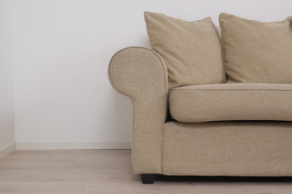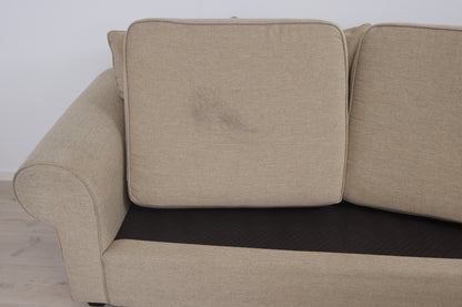 Vi dyprenser sofaen med Kärcher sine profesjonelle møbelrensmaskiner med nøytral og skånsom såpe. Hele sofastammen sprayes med såpevann som etter kort tid suges ut igjen.