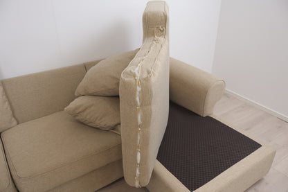 Deretter ser vi etter skader både i konstruksjonen og i stoffet, for så å utbedre disse. Videre blir sofaen grundig støvsuget med industristøvsuger før renseprosessen starter.