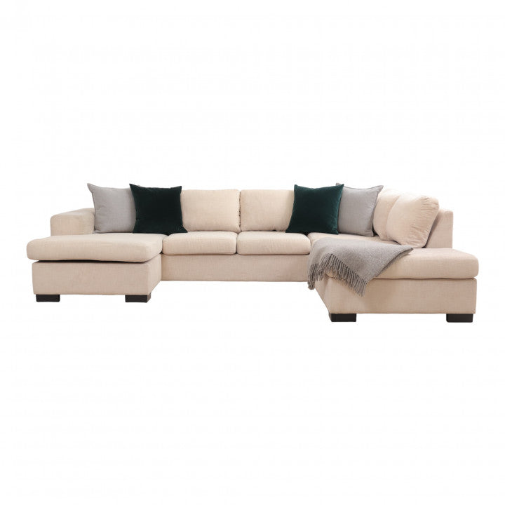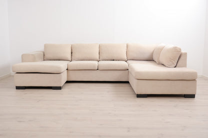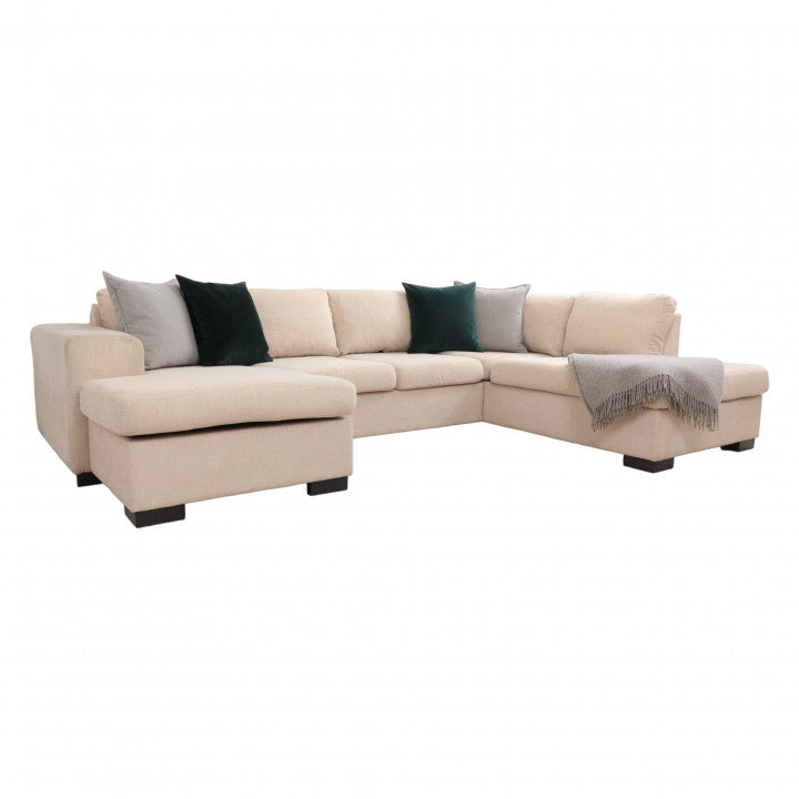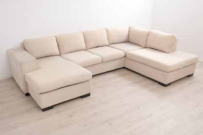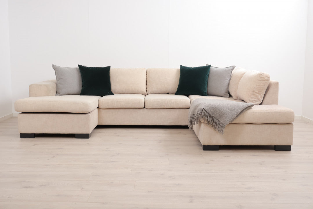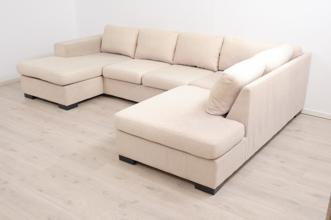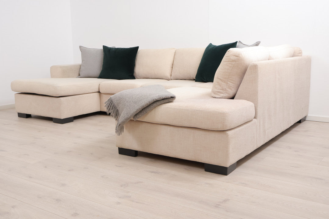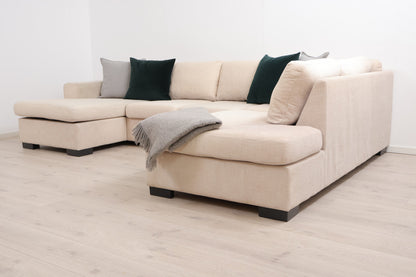 Nyrenset | Beige u-sofa med åpen ende og sjeselong