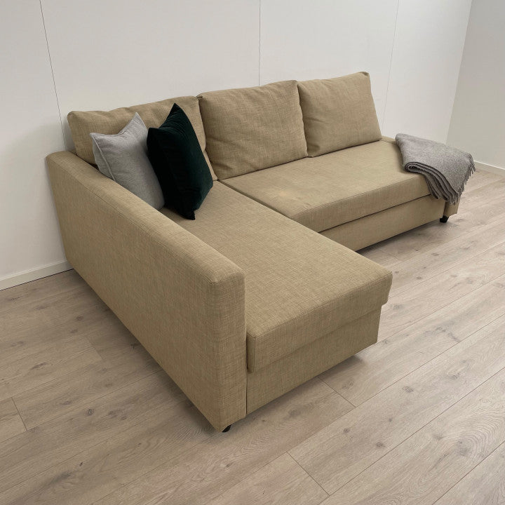 Nyrenset | Beige vendbar IKEA Friheten sovesofa med sjeselong