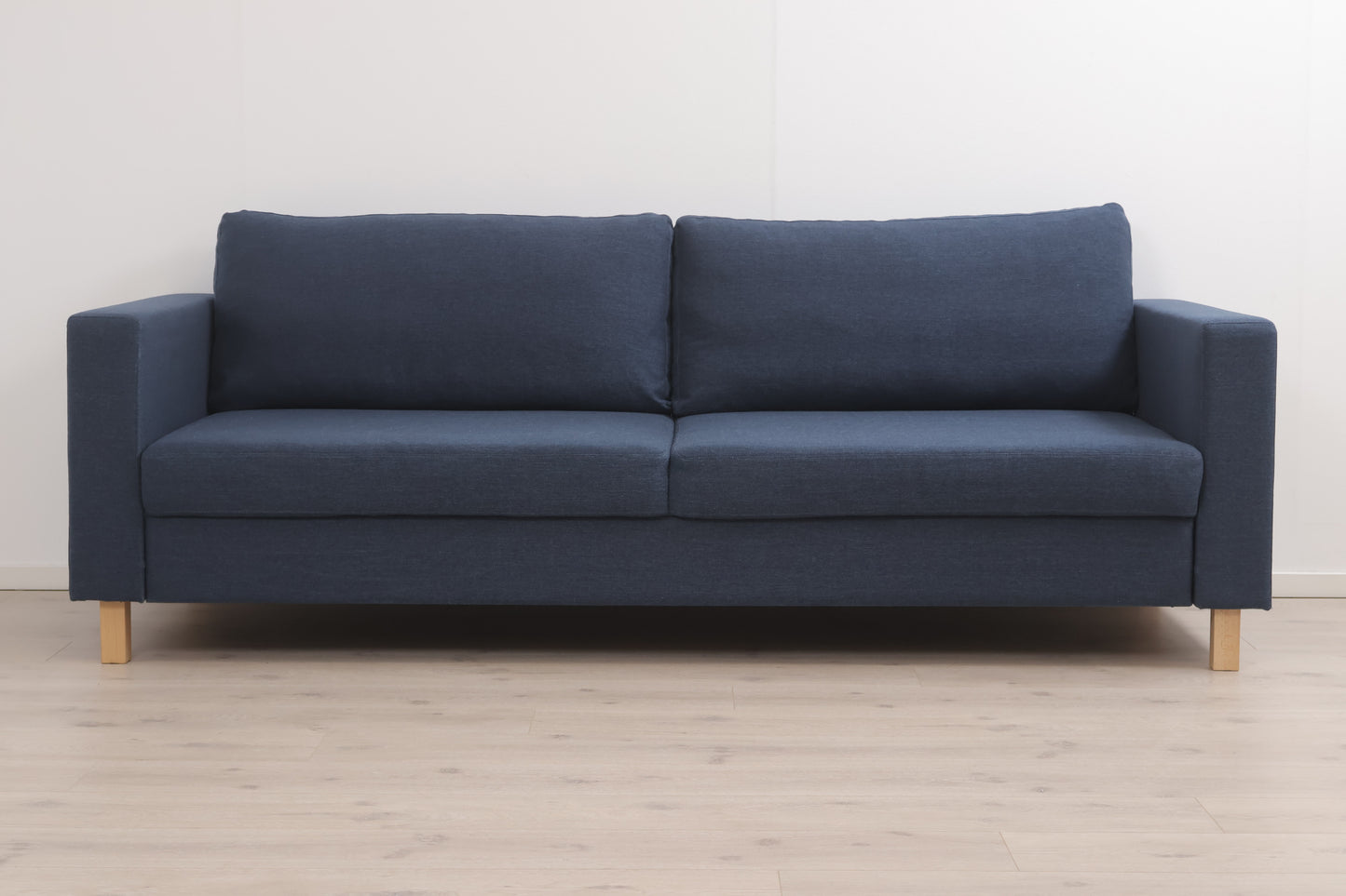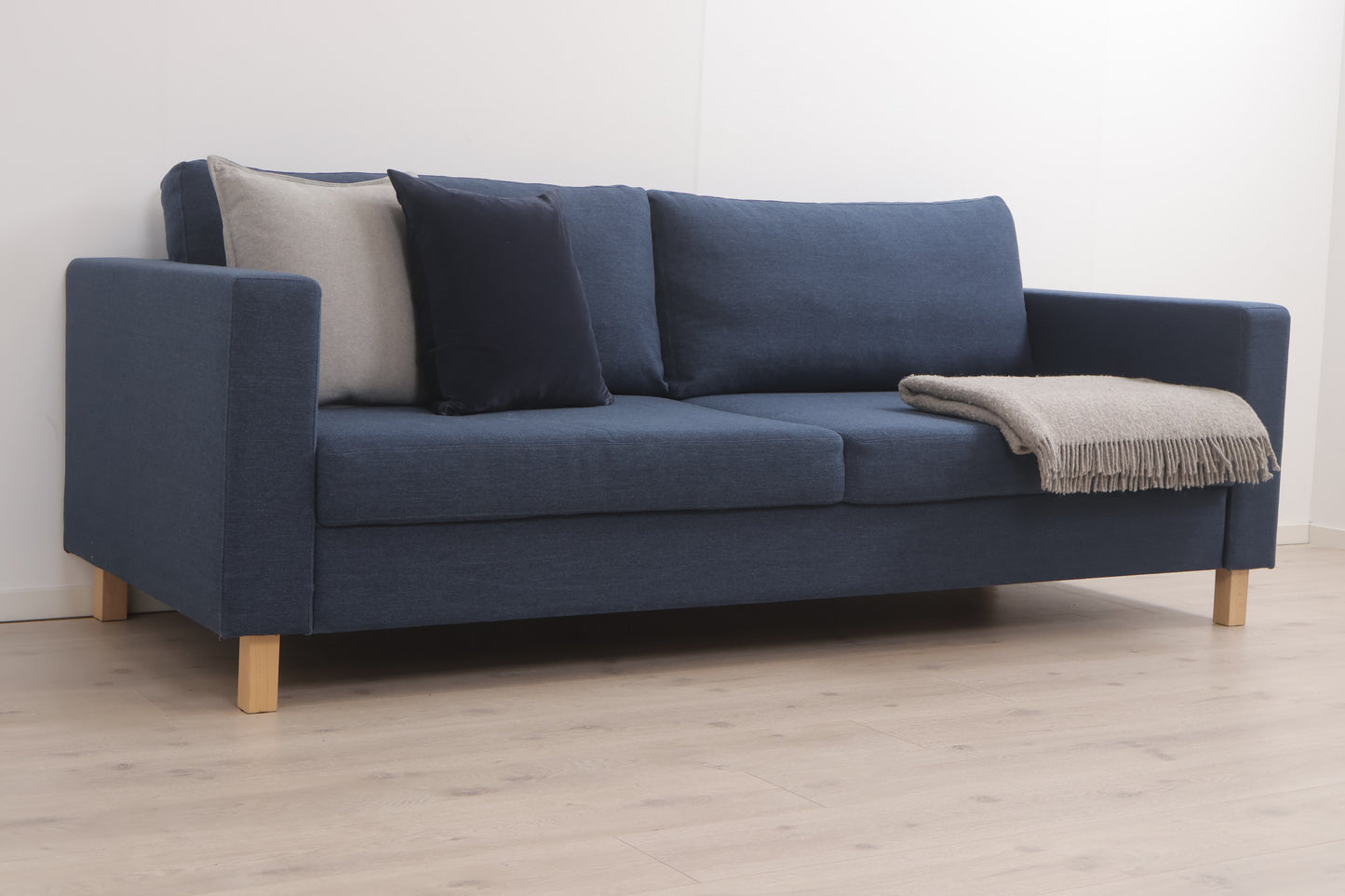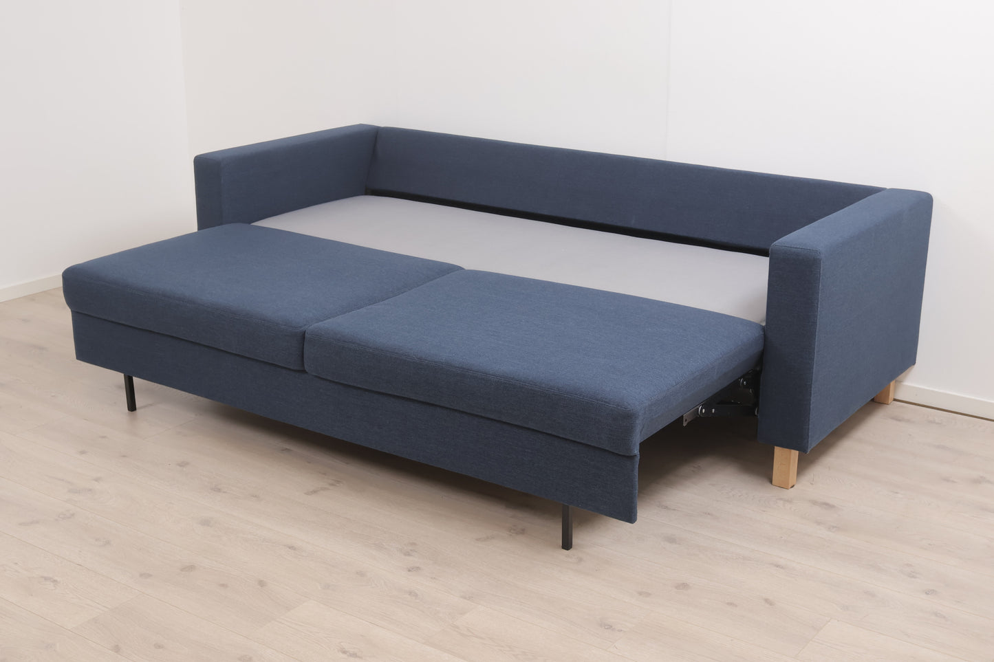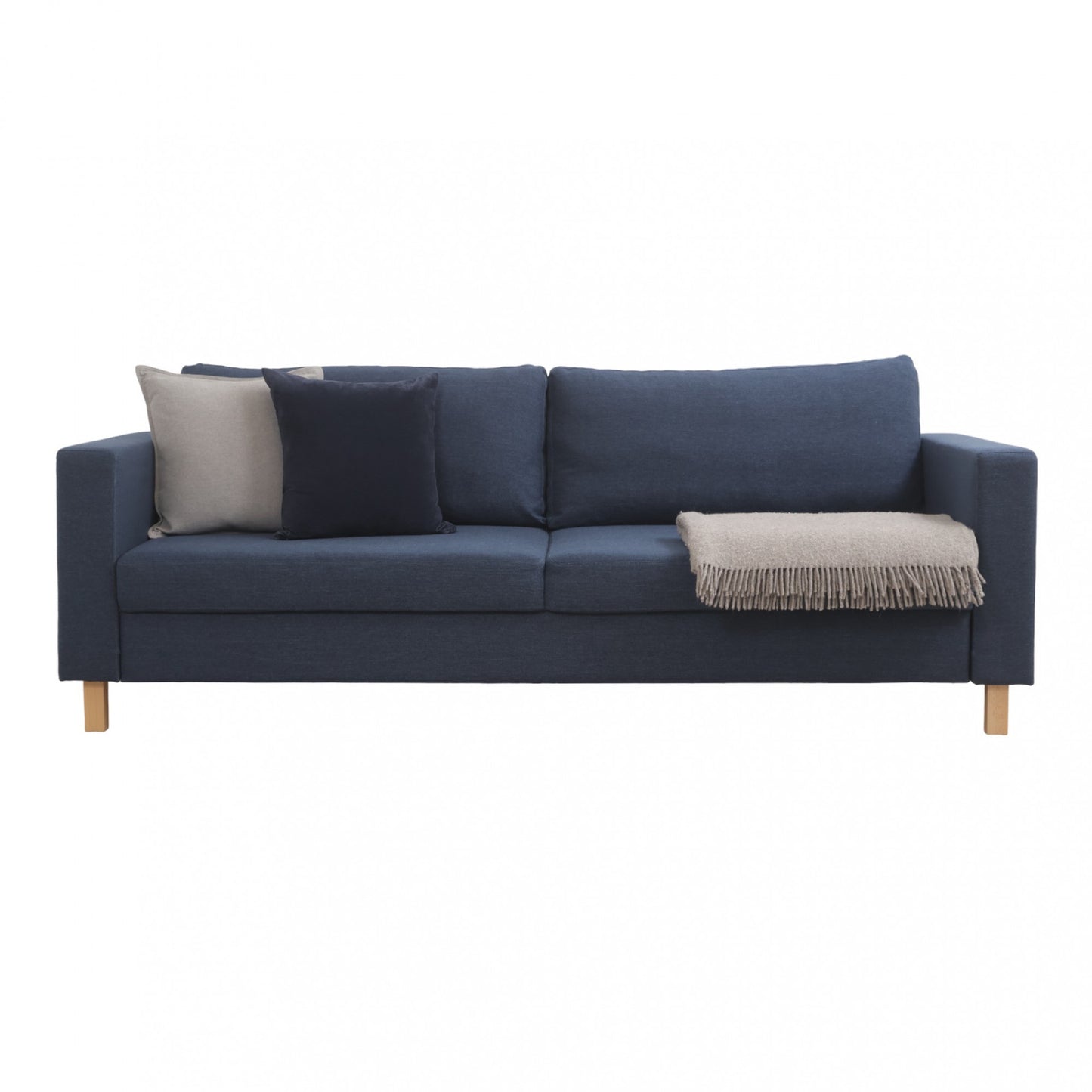 Nyrenset | Blå 3-seter sovesofa med eikebein