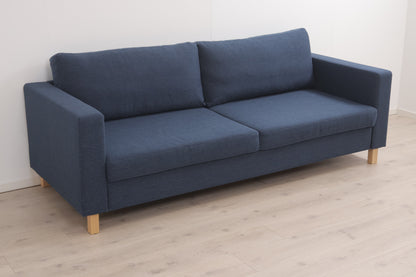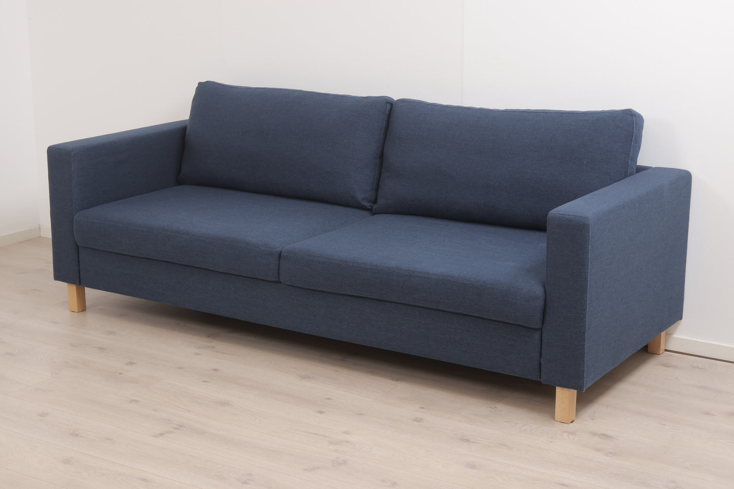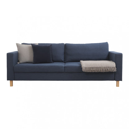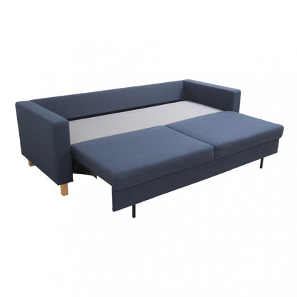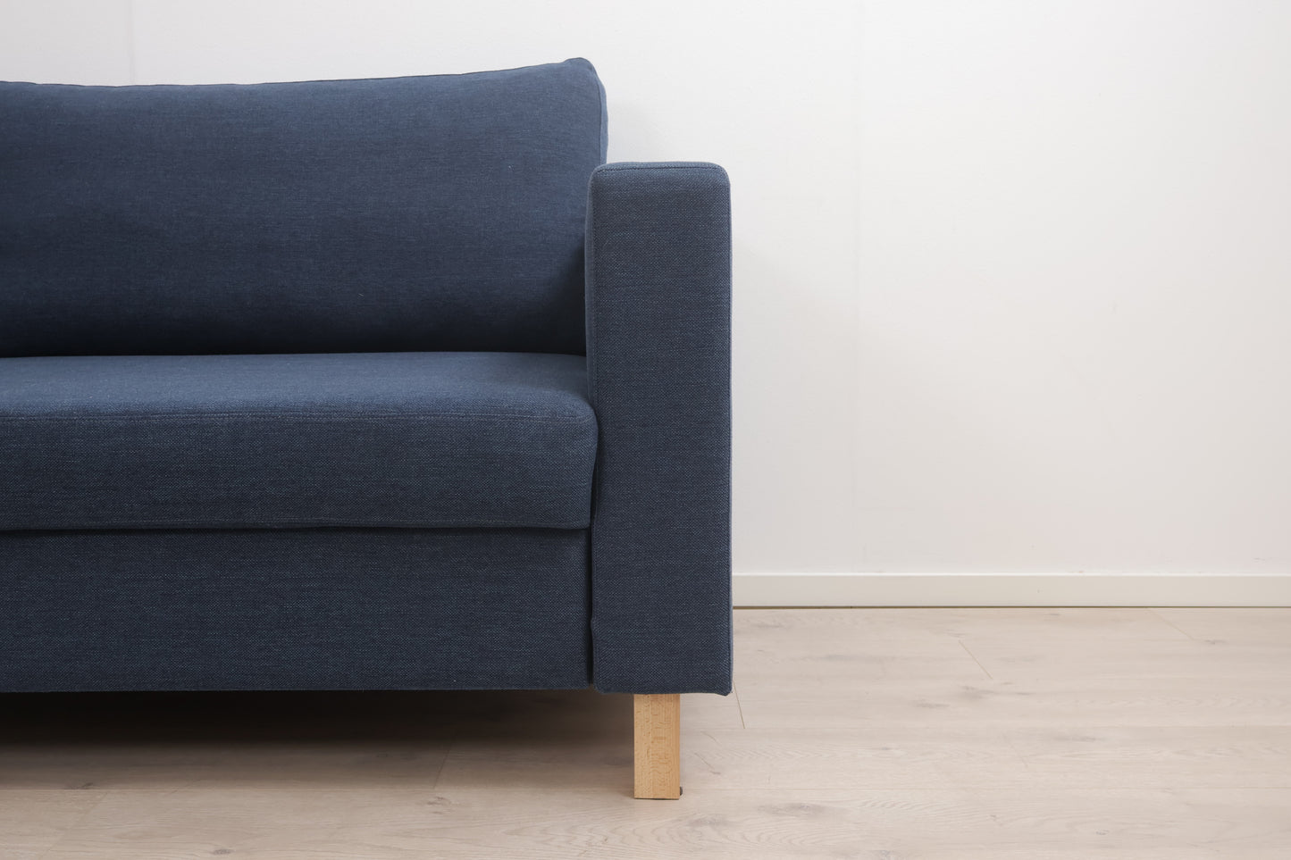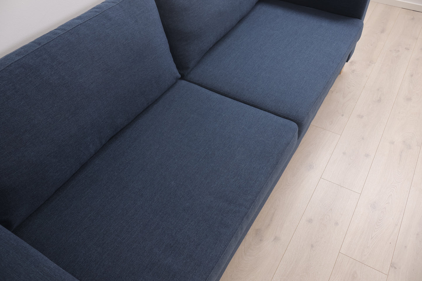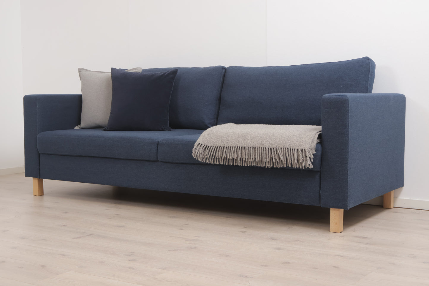 Nyrenset | Blå 3-seter sovesofa med eikebein