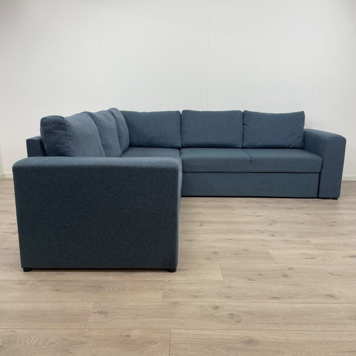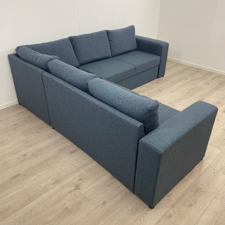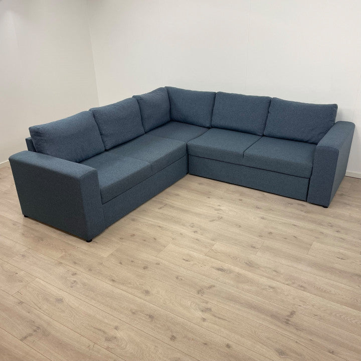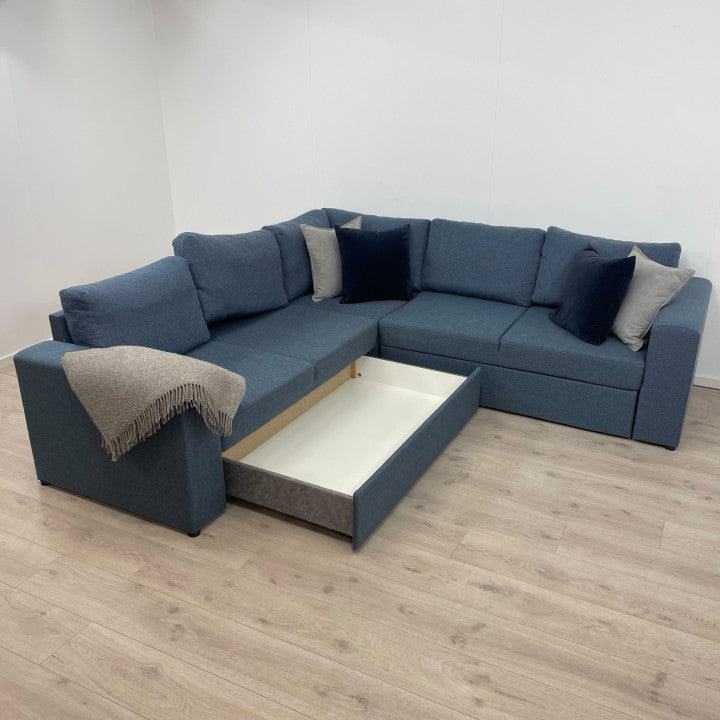 Nyrenset | Blå hjørne-sovesofa med oppbevaring