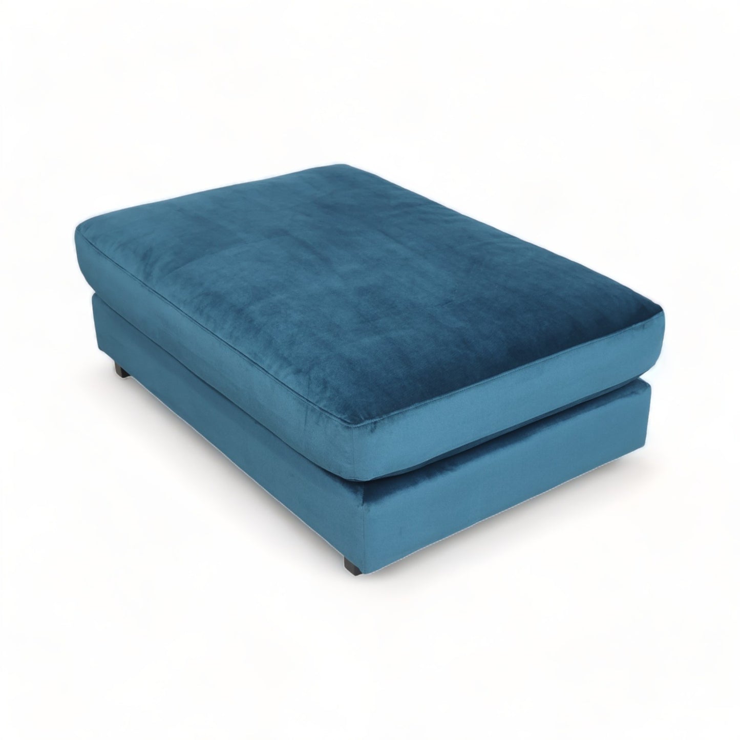 Nyrenset blå puff i velur. Puffen fremstår som helhetlig pen med god sittekomfort og normal bruksslitasje. Det er et par bruksmerker på toppen og på den ene siden som vises på de siste produktbildene. Ellers i fin stand. Renset og leveringsklar.
