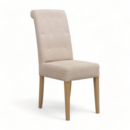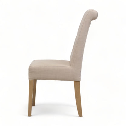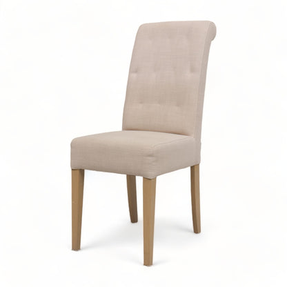 Bohus spisestol i lyst trekk på treben. En moderne stol som passer like godt som spisestol i stuen og på kjøkkenet, som ventestol i gangen. Stolen er i god tilstand med kun normal bruksslitasje.