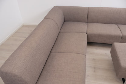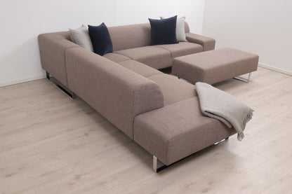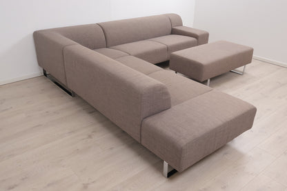 Nyrenset | Brun/beige Bolia Seville 8. pers hjørnesofa med puff