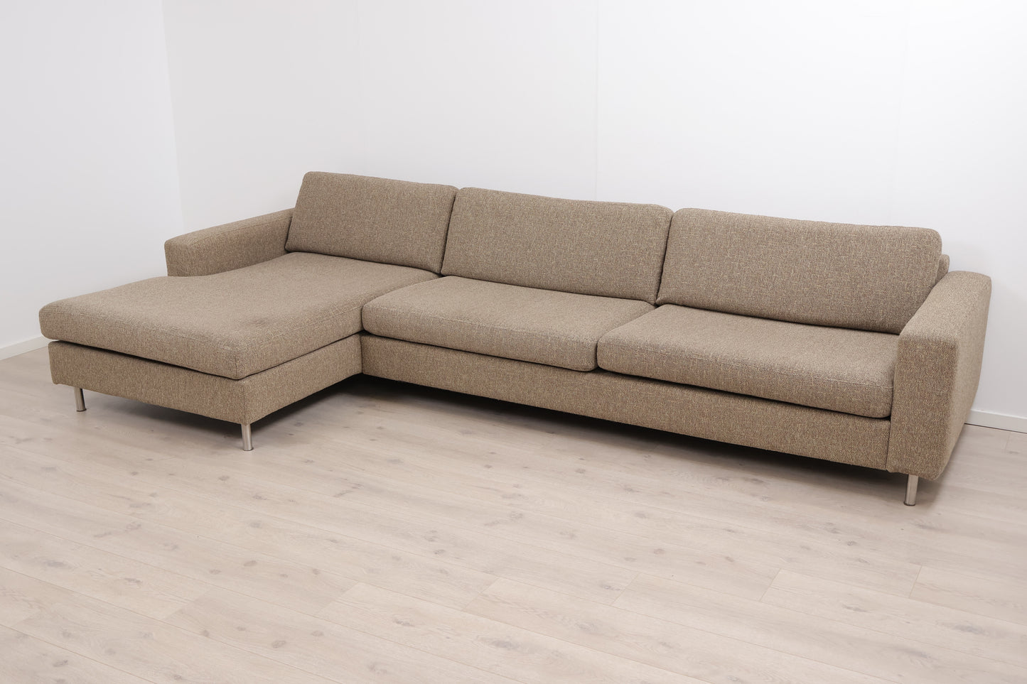 Brun Bolia Scandinavia 4-seter sjeselongsofa med avtagbare/vaskbare trekk på samtlige puter. Sofaen fremstår som helhetlig pen og har god og myk sittekomfort. Har noe slitasje i stoffet som vist på de siste produktbildene. Noe nuppete langs sømmene på putene. Noe slitasje i filten under sofaen men dette er ikke synlig når putene ligger på plass. Renset og Leveringsklar.