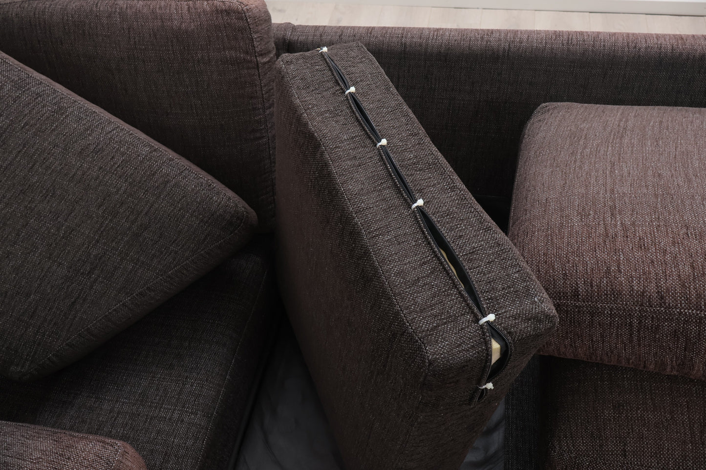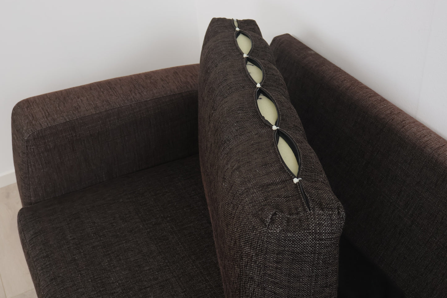 Nyrenset brun Furninova hjørnesofa med avtagbare/vaskbare trekk på samtlige puter. Sofaen fremstår som helhetlig pen med god sittekomfort og normal bruksslitasje. En av ryggputene og en av sitteputene har defekte glidelåser og er blitt stripset igjen. Det er et par bruksmerker som vises på de siste produktbildene, blant annet en bak på ryggen på sofaen. Sofaen er generelt ujevn i fargen grunnet solbleking, men dette er ikke utpreget sjenerende. Ellers i fin stand. Renset og leveringsklar.