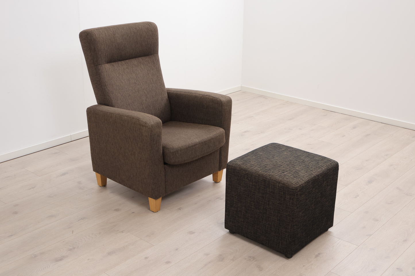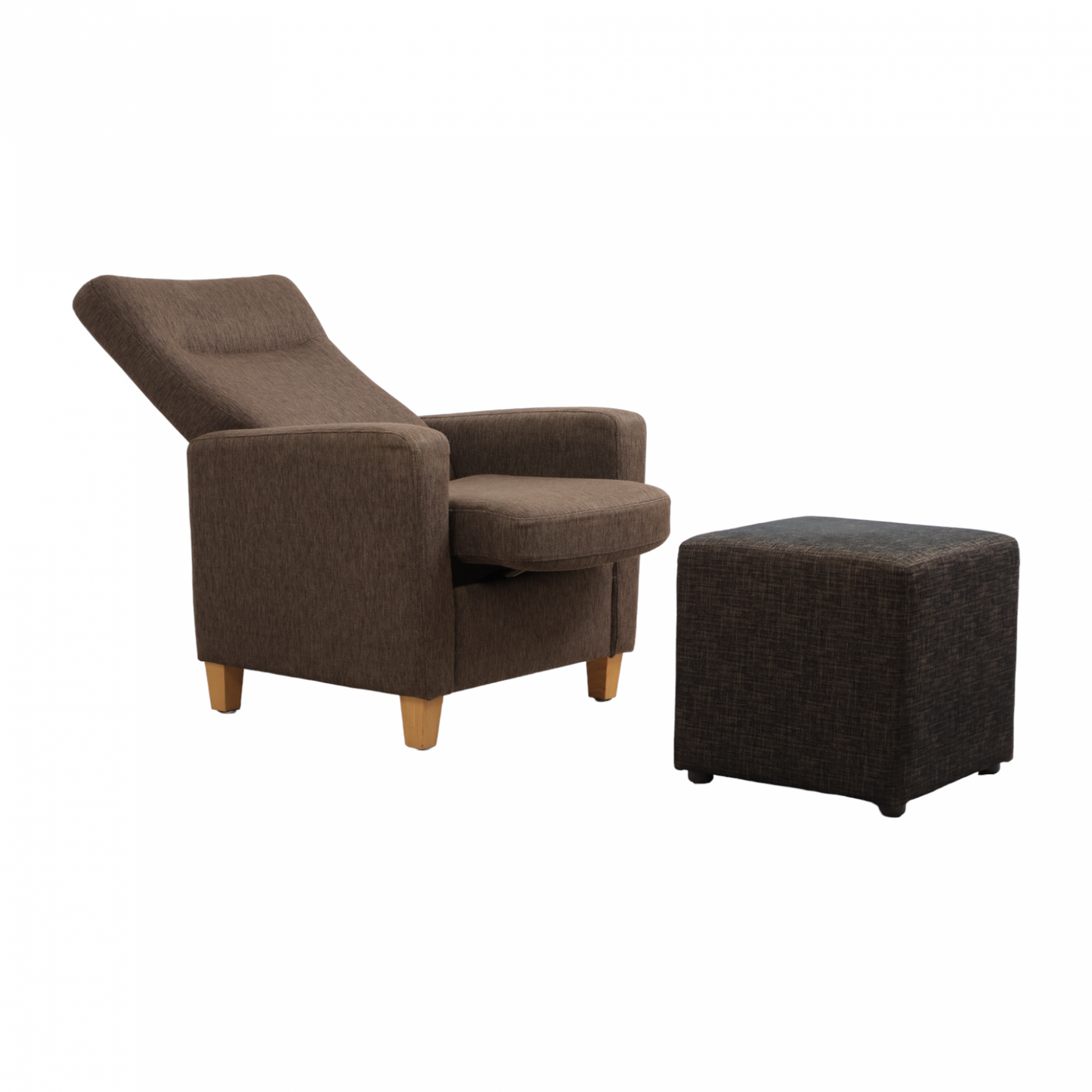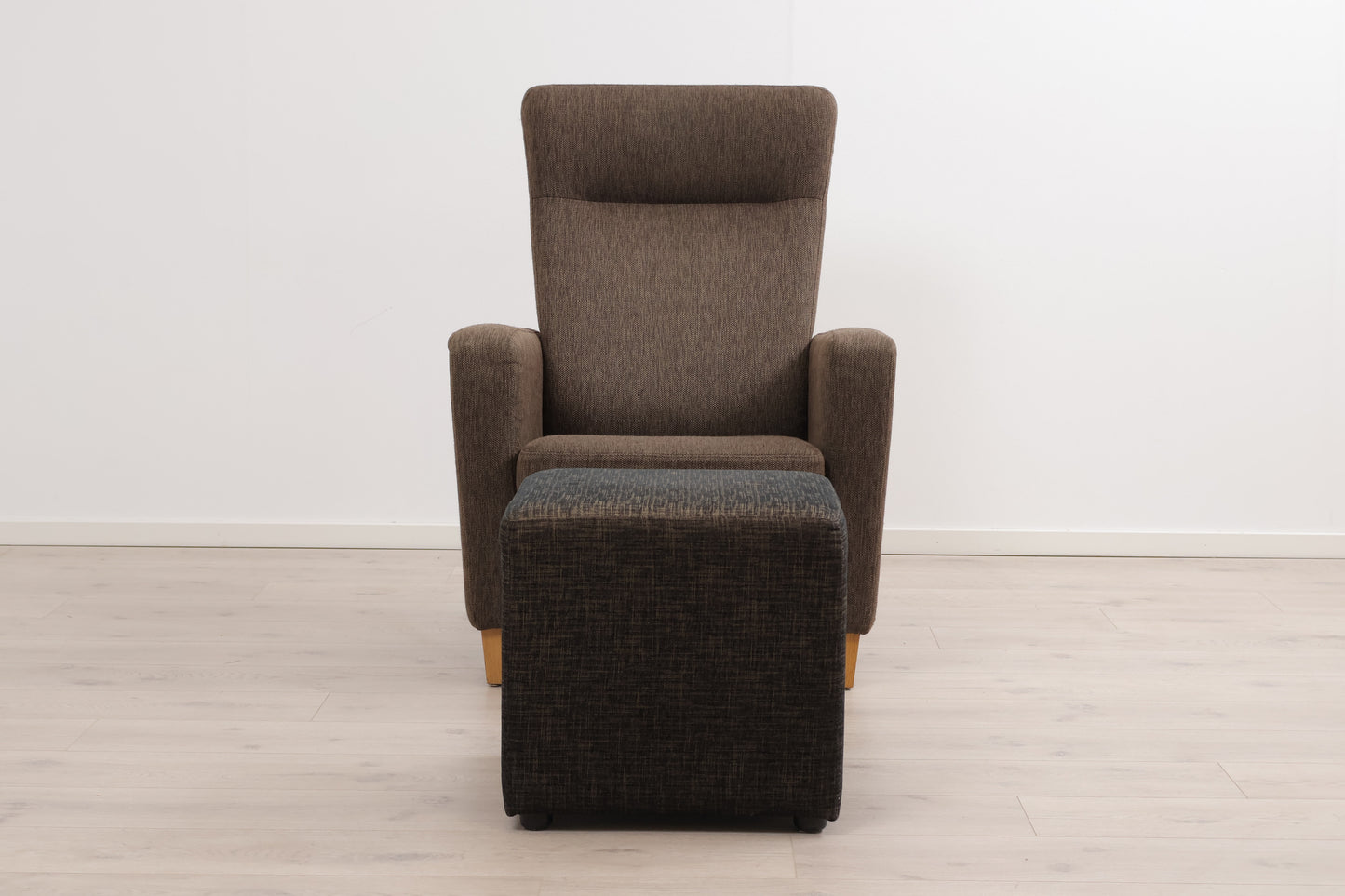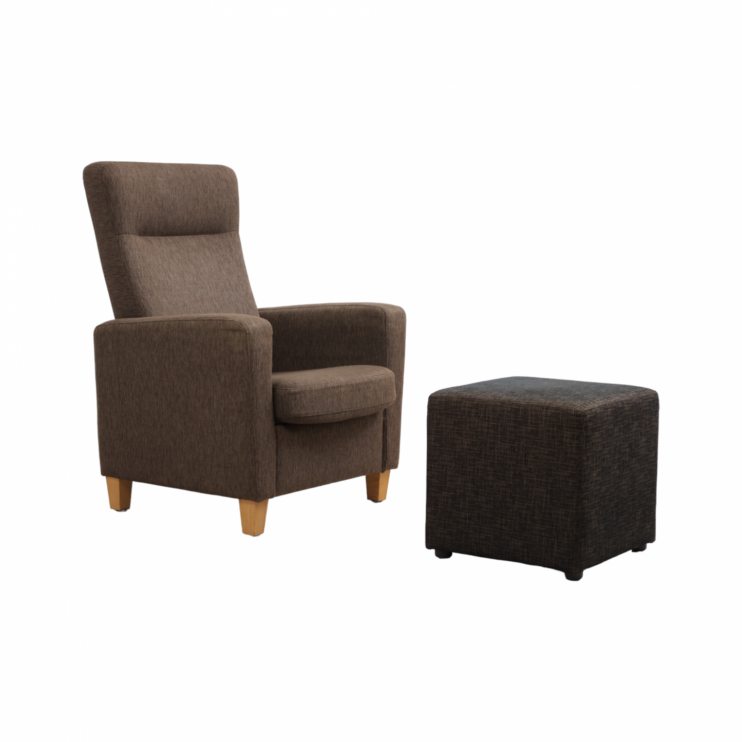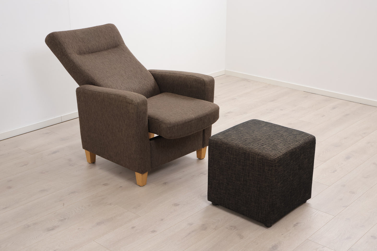 Nyrenset | Brun lenestol med justérbar rygg og puff