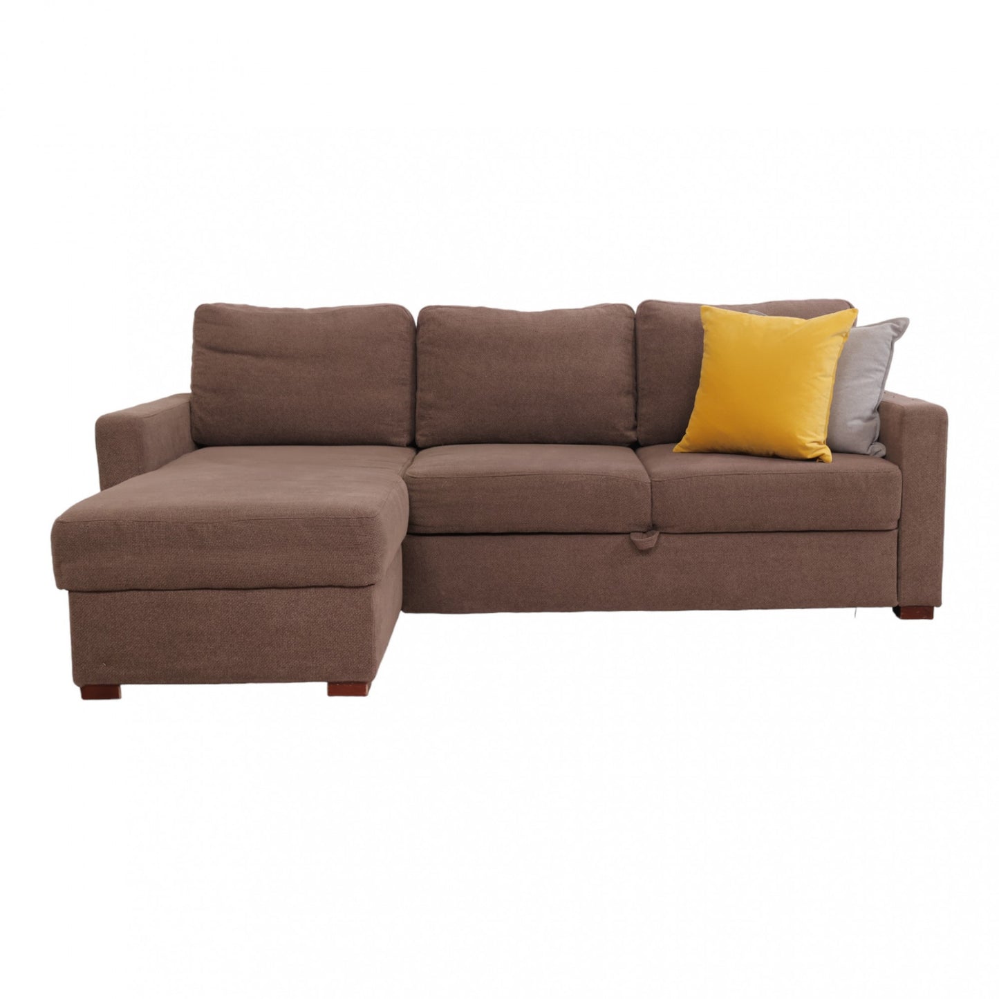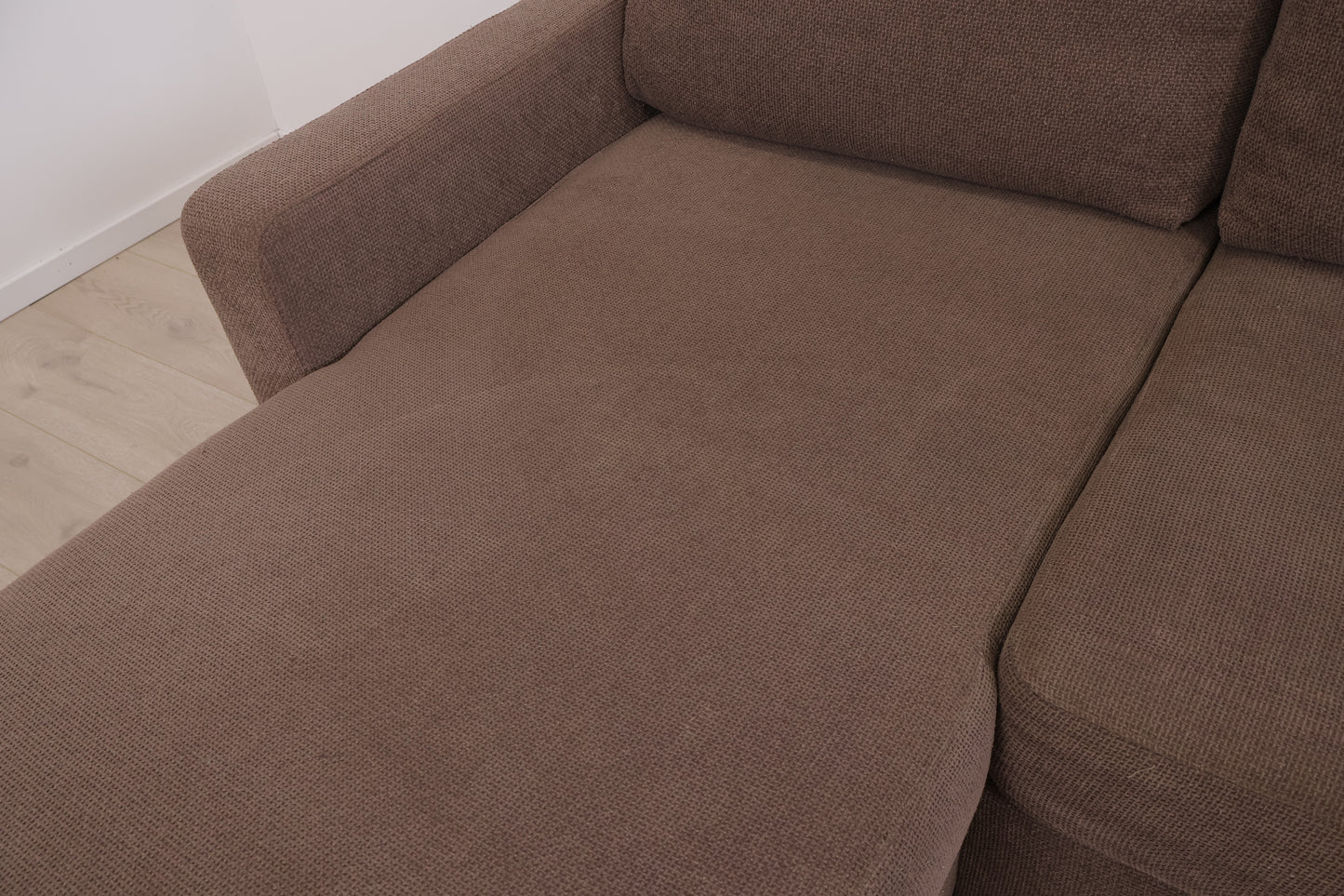 Nyrenset | Brun sovesofa med sjeselong og oppbevaring