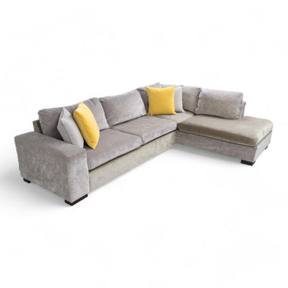 Nyrenset | Eros grå Bohus Hampton Velur sofa med sjeselong