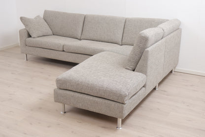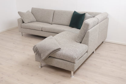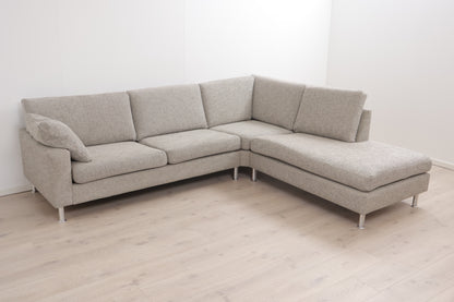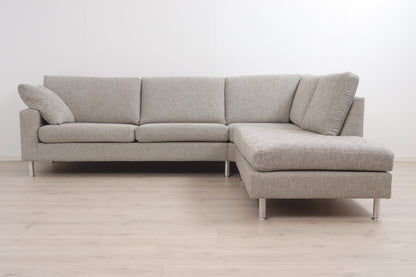 Nyrenset | Grå/beige hjørnesofa med åpen ende