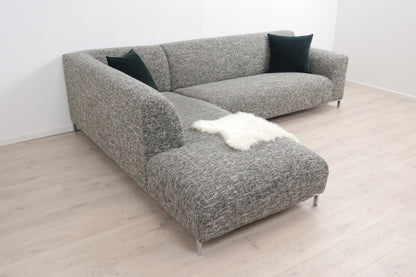 Nyrenset | Grå/beige hjørnesofa med åpen ende
