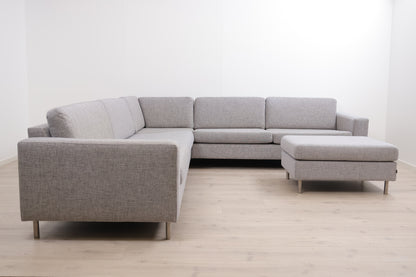 Nyrenset | Grå Bolia Scandinavia hjørnesofa med puff