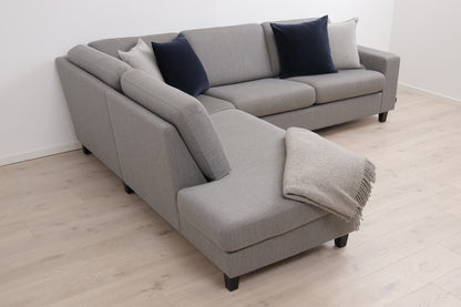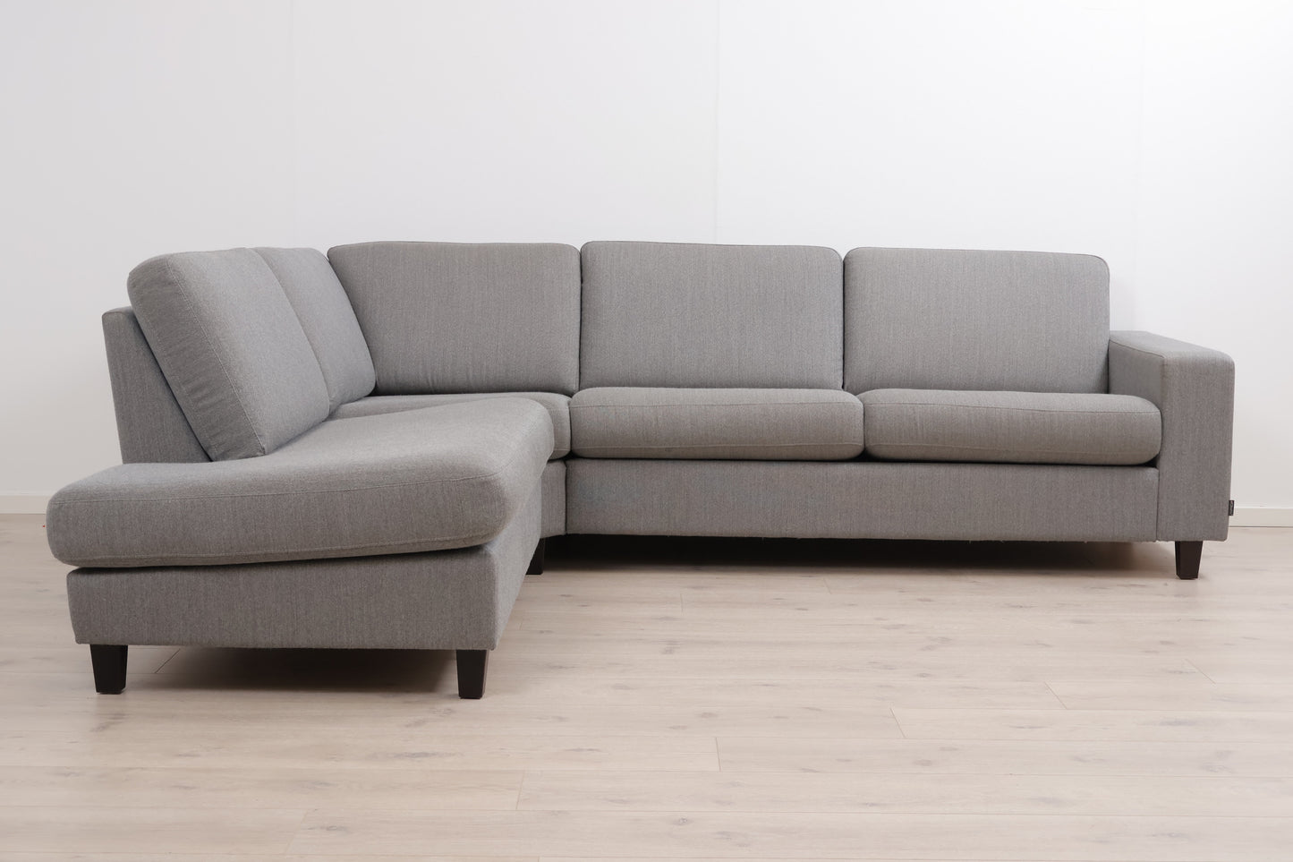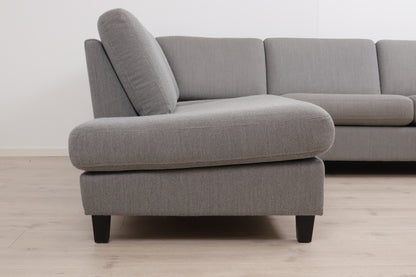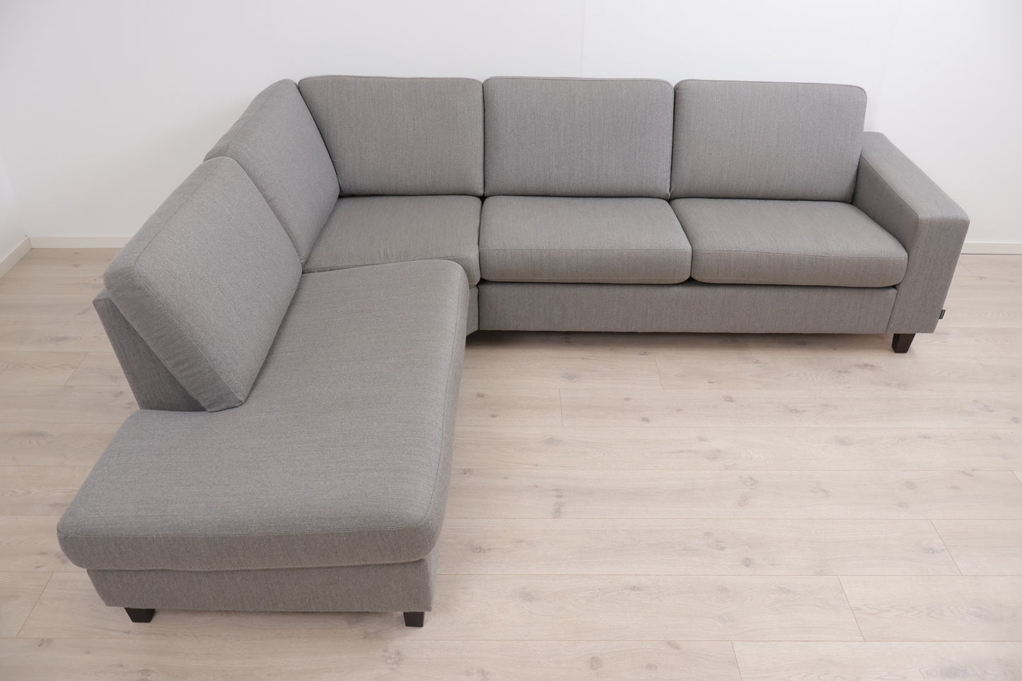 Nyrenset | Grå Formfin hjørnesofa med åpen ende i ullstoff