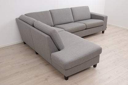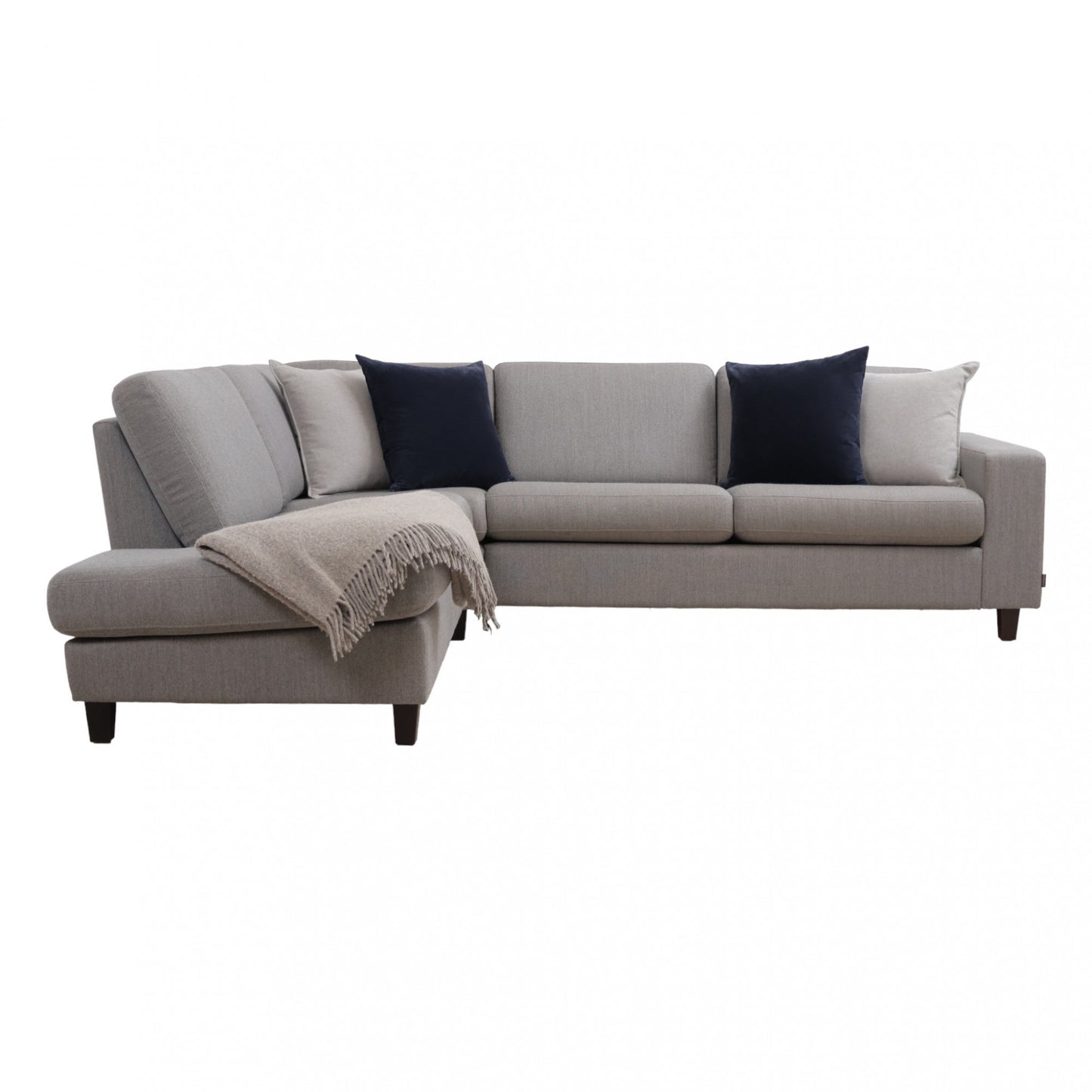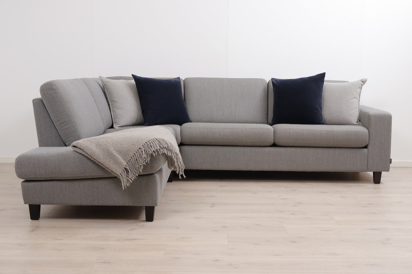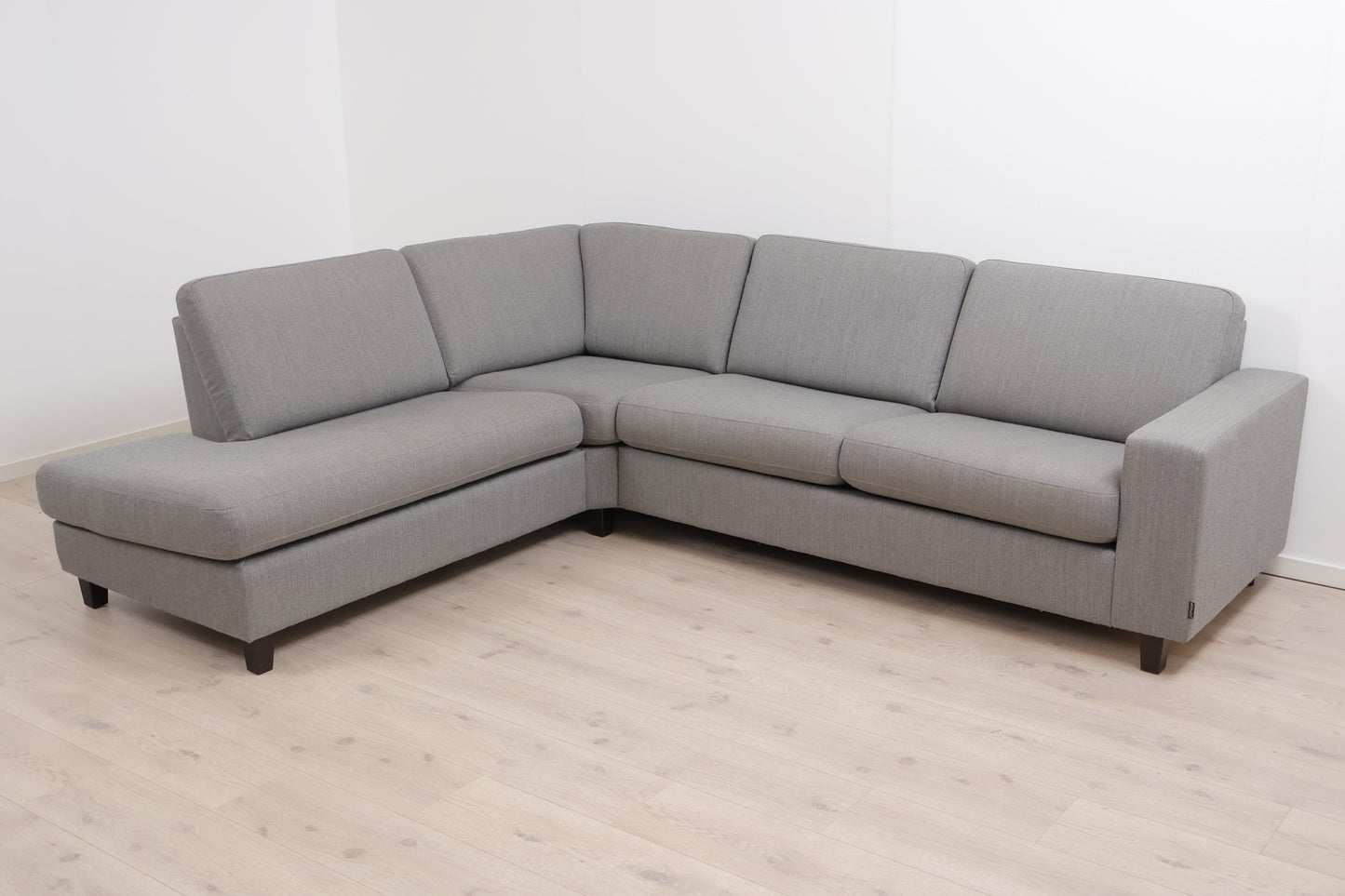 Nyrenset | Grå Formfin hjørnesofa med åpen ende i ullstoff