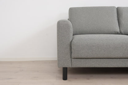 Nyrenset grå/grønn Cleveland hjørnesofa med åpen ende med fastmonterte sitteputer og avtagbare/vaskbare trekk på ryggputene. Sofaen fremstår som pen med god sittekomfort og normal/lite bruksslitasje. Sofaen er solbleket noe lysere på ryggen ved den åpne enden, som vist på det siste produktbildet. Ellers i fin stand. Renset og leveringsklar.