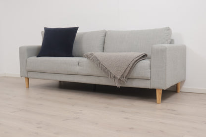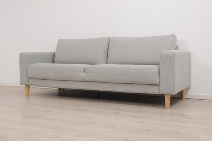 Nyrenset | Grå/grønn Jysk Egense 3-seter sofa med eikebein