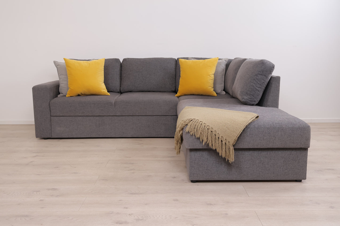 Nyrenset | Grå hjørne-sovesofa med oppbevaring
