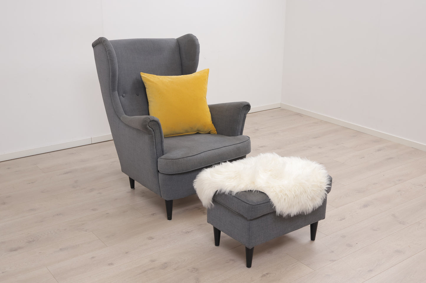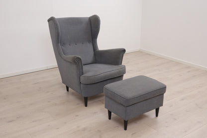 Nyrenset | Grå IKEA Strandmon lenestol med pall
