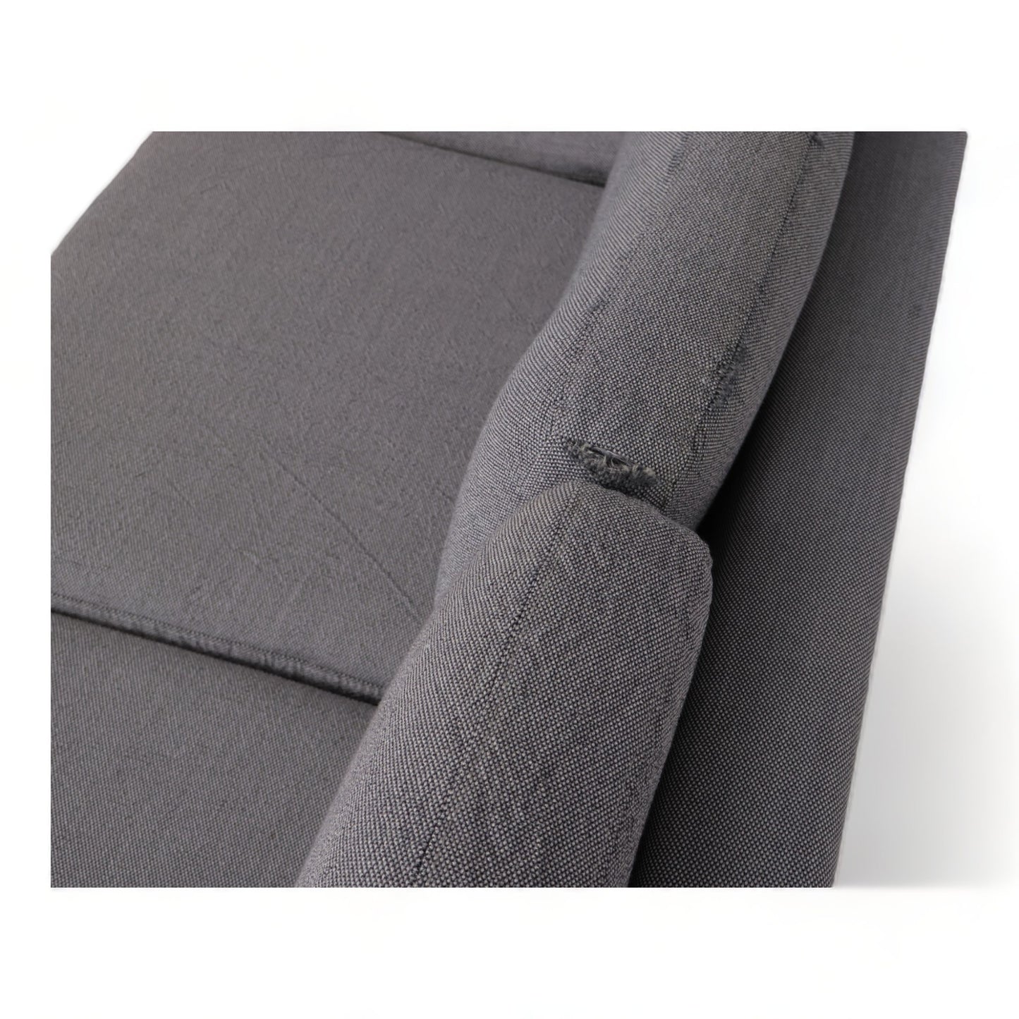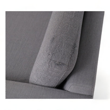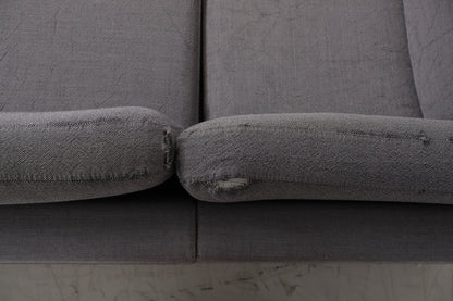 Sofaen viser tydelig bruksslitasje, inkludert rynkete og ru putetrekk som har krympet etter feil vask. Det er rifter, hull og bruksmerker på armlen og fastmontert sittepute. Tidligere eier har hatt husdyr, så noen hår kan forekomme. Renset og klar for rask levering.