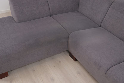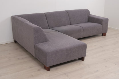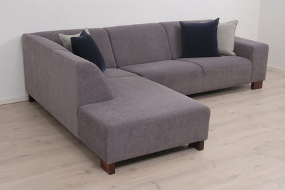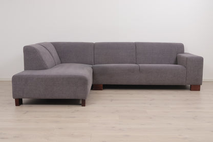Nyrenset | Grå/lilla hjørnesofa med åpen ende