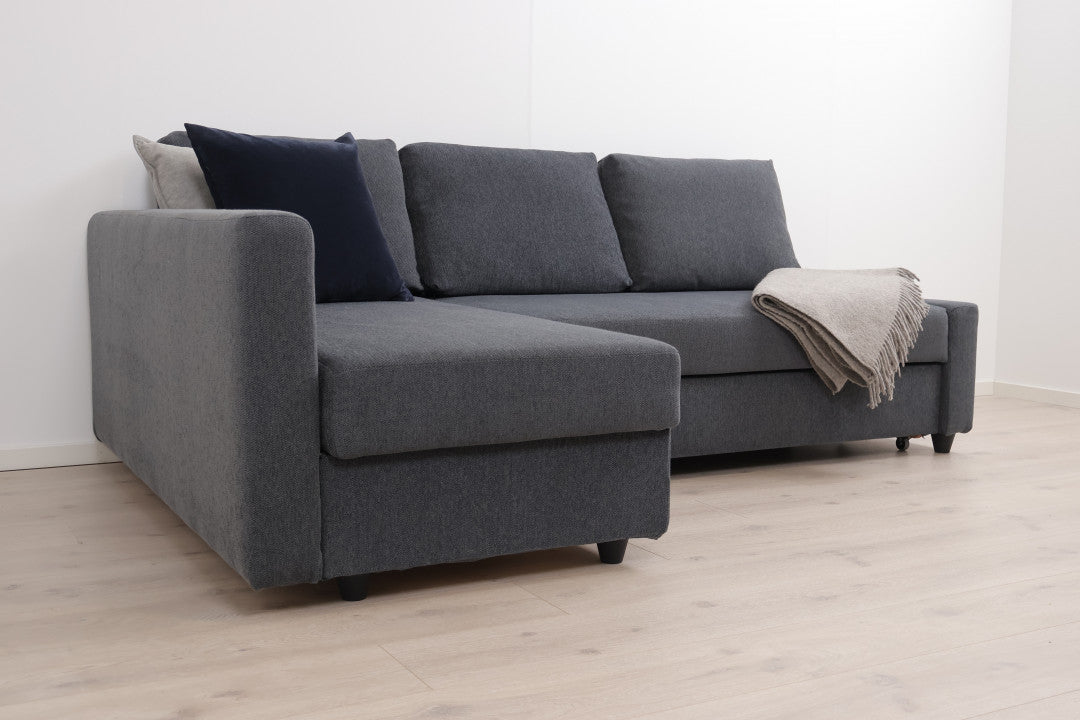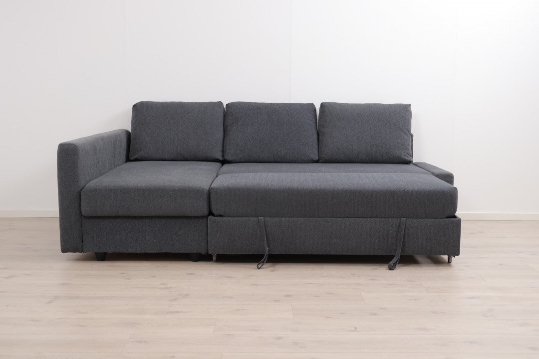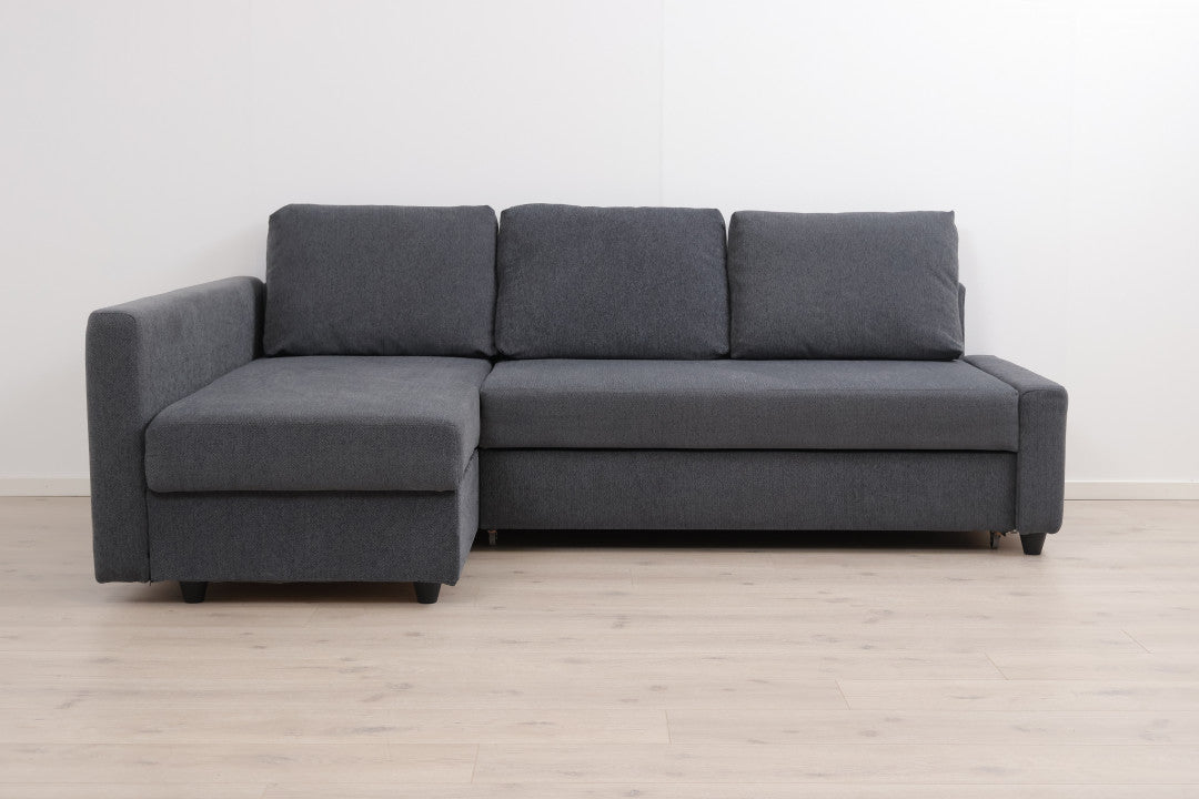 Nyrenset | Grå vendbar IKEA Friheten sovesofa med sjeselong og oppbevaring