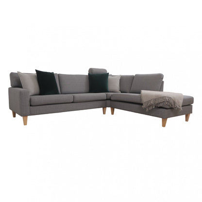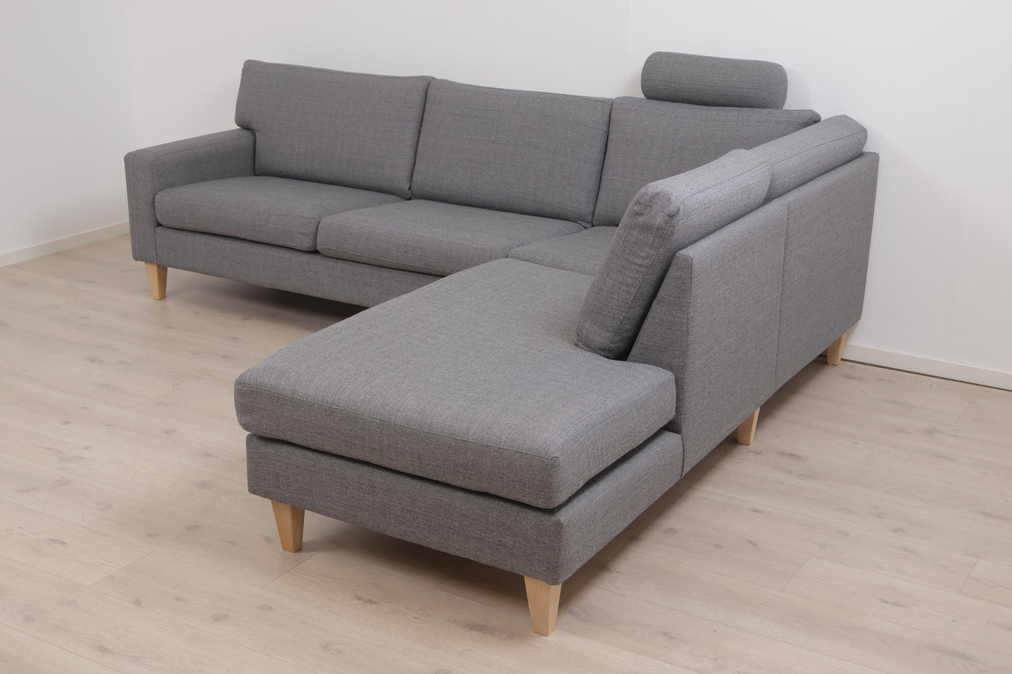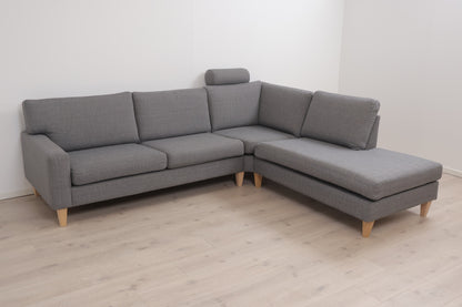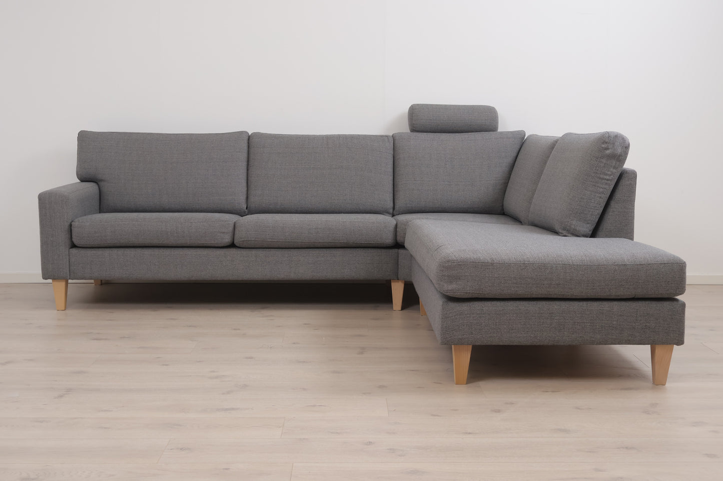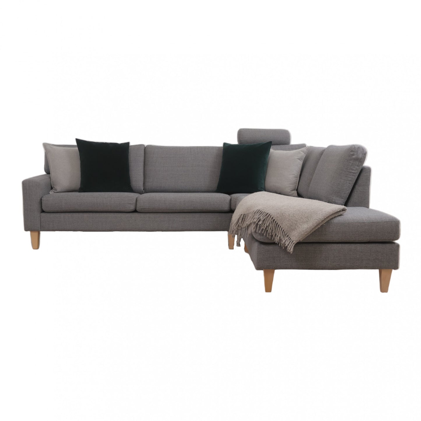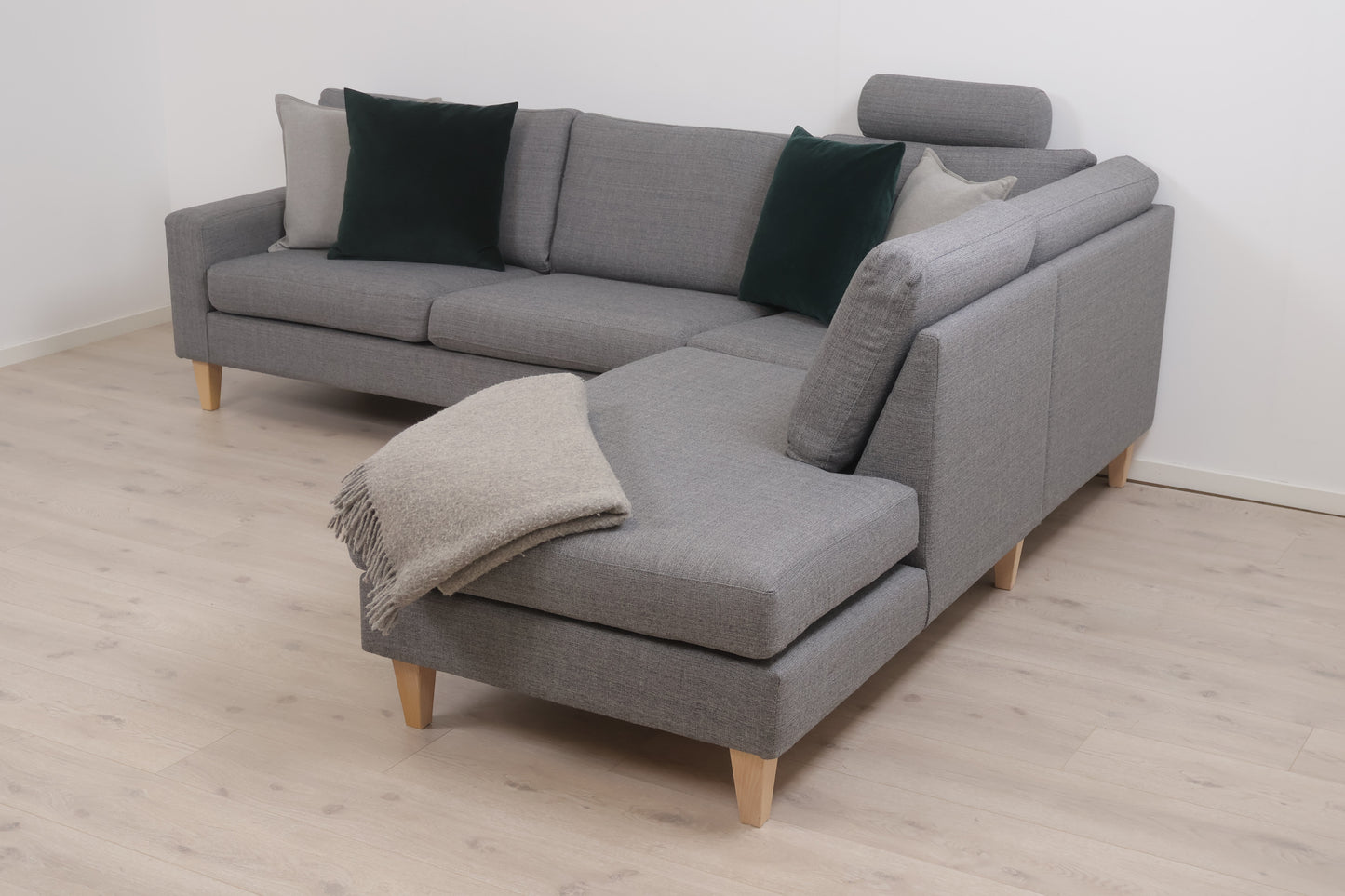 Nyrenset | Grå Verona hjørnesofa med åpen ende og eikebein