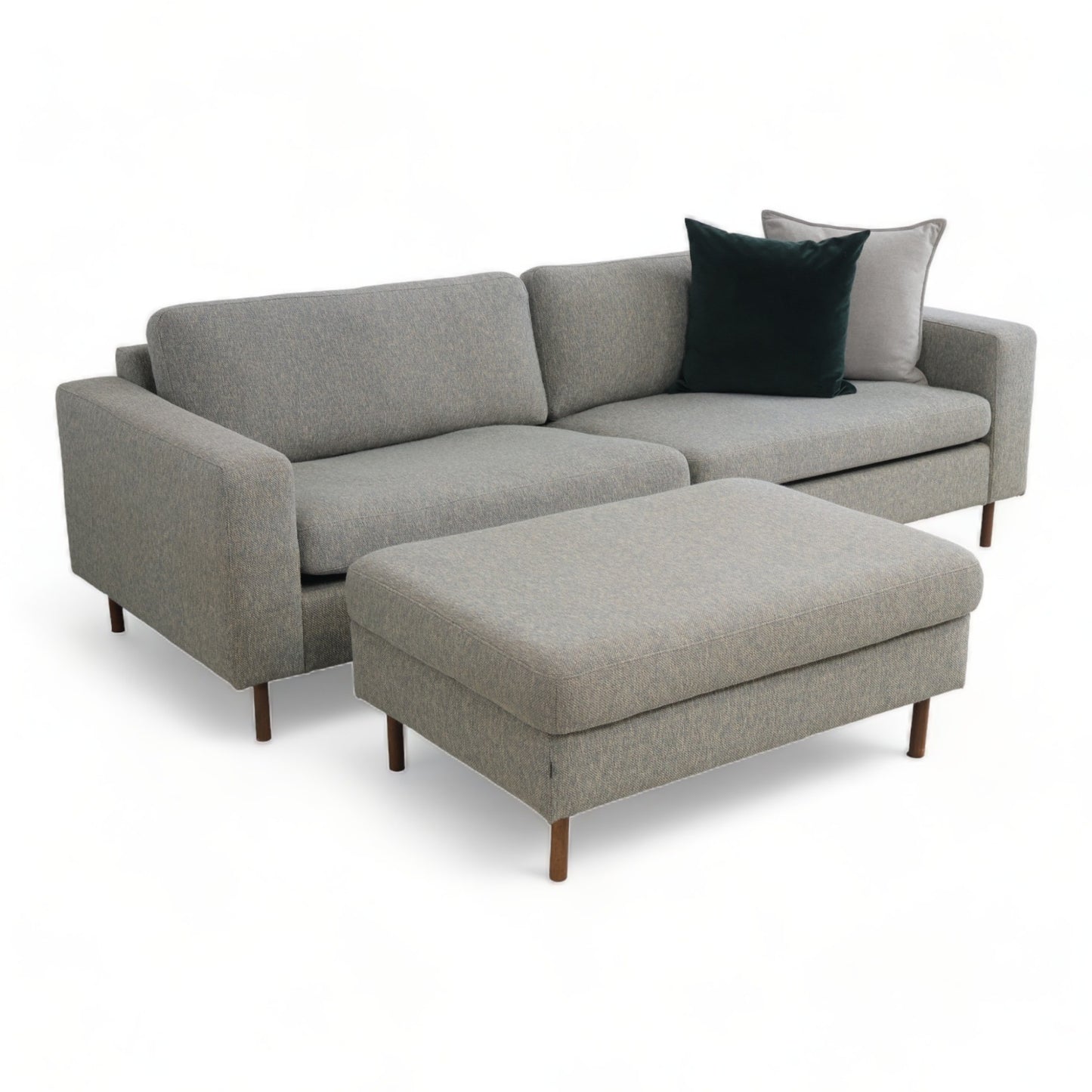 Nyrenset | Grågrønn Bolia Scandinavia 3-seter sofa med puff