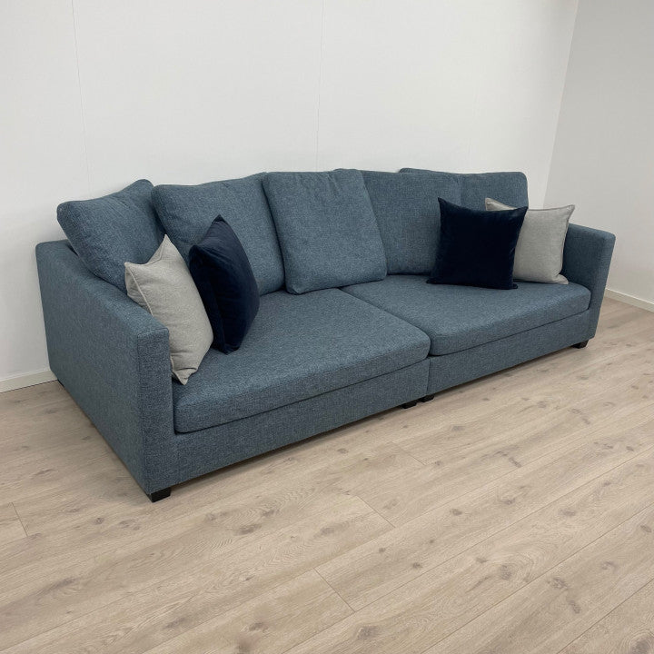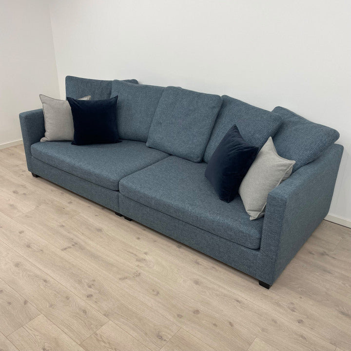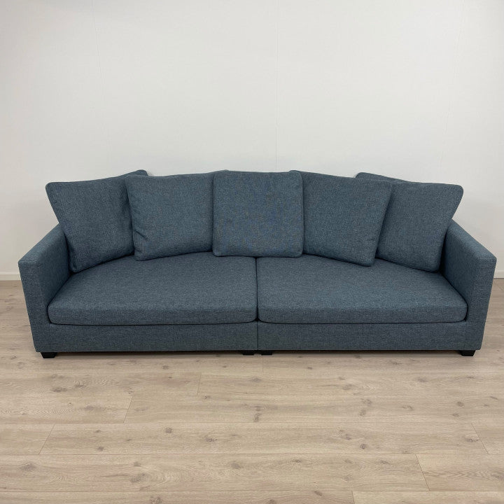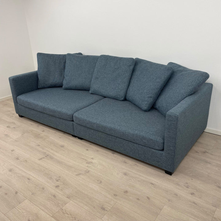 Lys blå Habitat Viking 3-seter sofa med dunputer og avtagbare/vaskbare trekk på samtlige puter. Sofaen har dyp og myk sittekomfort og passer perfekt til late fredagskvelder foran tv'en. Sofaen fremstår som pen med normal bruksslitasje. Tidligere eier hadde katt og selv om sofaen er både renset og støvsuget vil det fortsatt finnes spor av hår i sofaen. Renset og Leveringsklar.