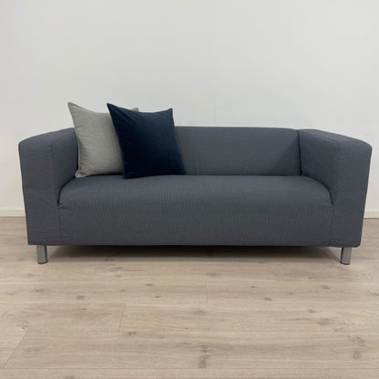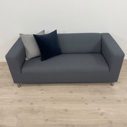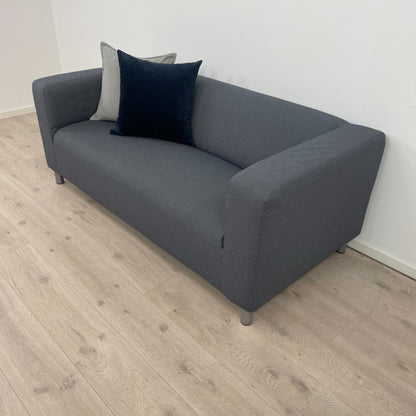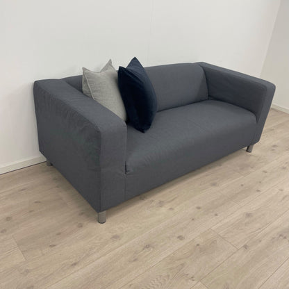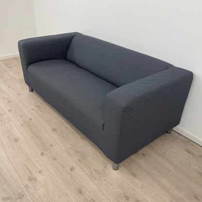 IKEA Klippan 2-seter sofa med avtagbart trekk på hele sofaen. Sofaen fremstår som pen og pent brukt. Det ene beinet mangler et lokk på undersiden, men dette har ingen betydning for bruken av sofaen. Renset og Leveringsklar.