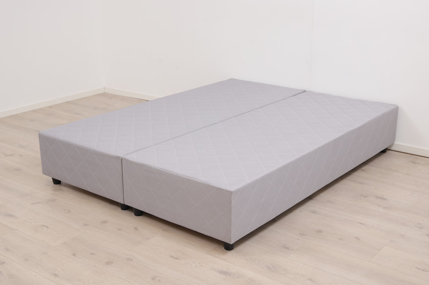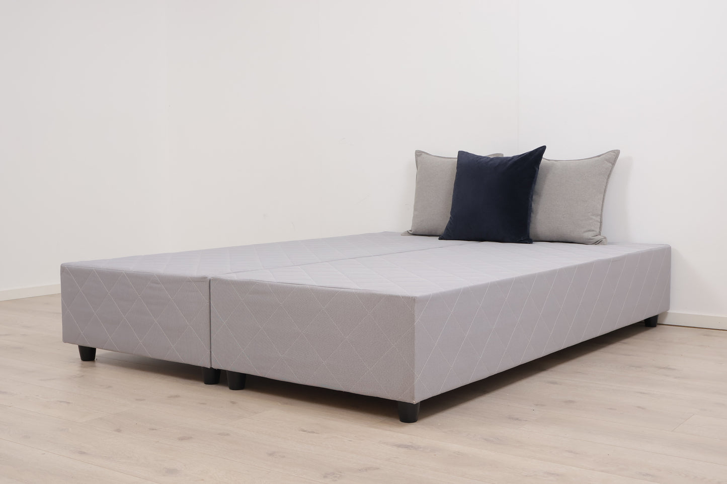 Nyrenset | Lys grå kontinentalseng med sorte bein, 150 cm x 200 cm