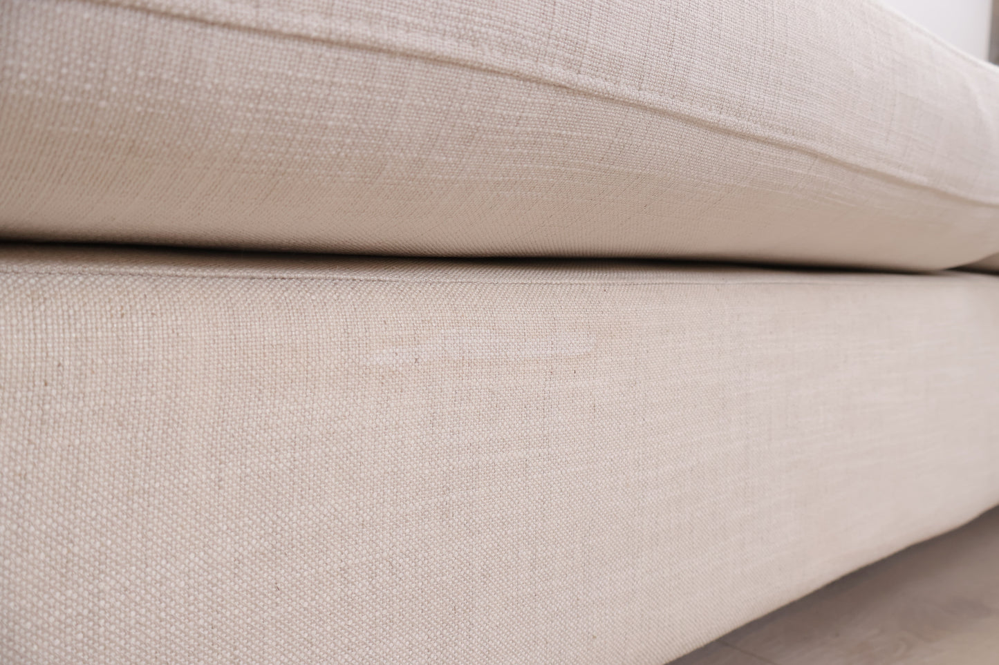 Deretter ser vi etter skader både i konstruksjonen og i stoffet, for så å utbedre disse. Videre blir sofaen grundig støvsuget med industristøvsuger før renseprosessen starter.