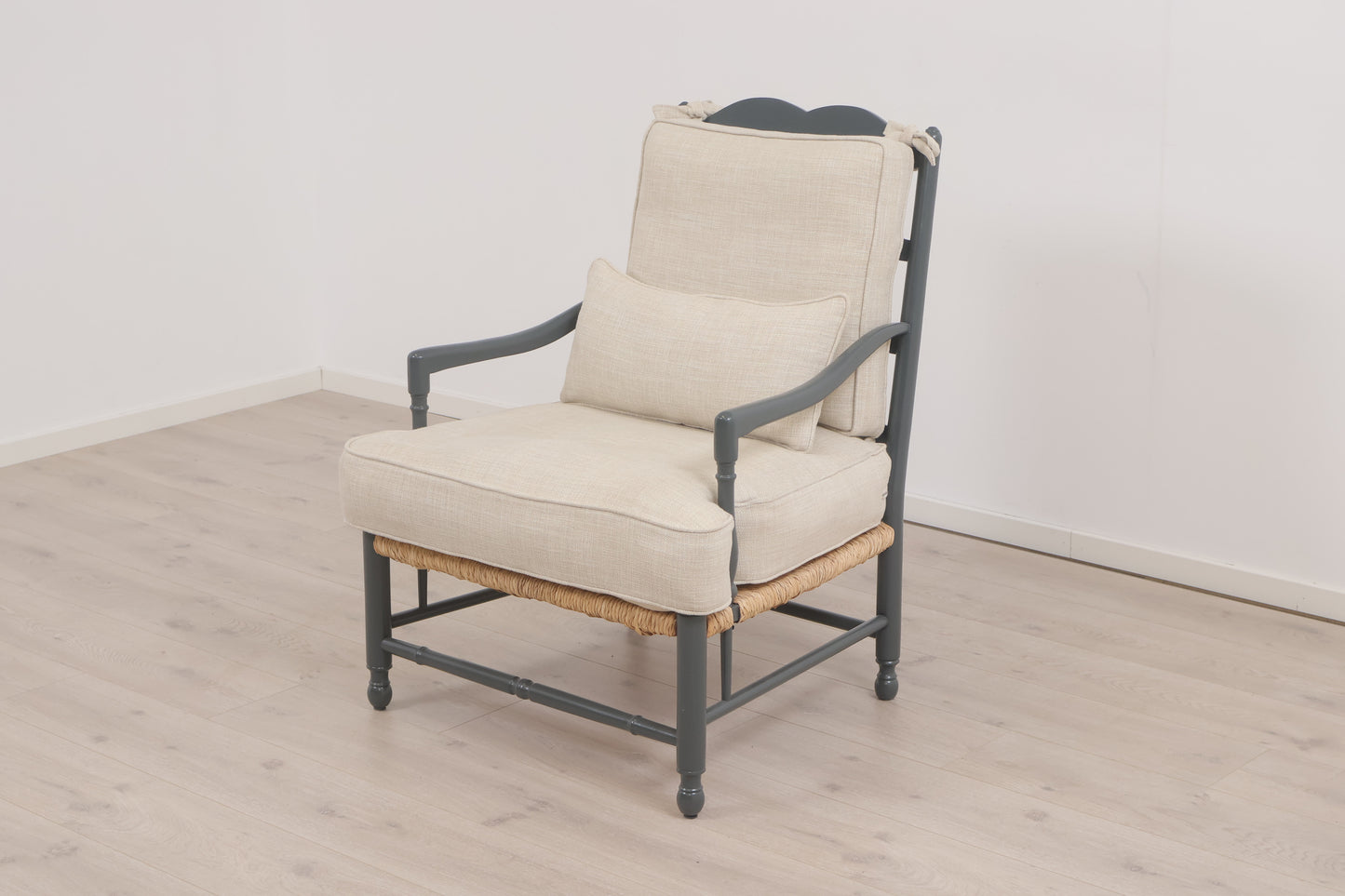Nyrenset | Kremhvit lenestol i malt treverk