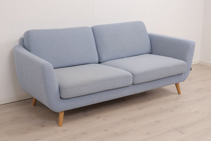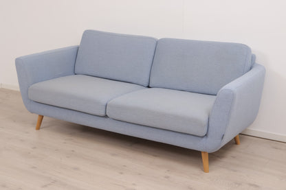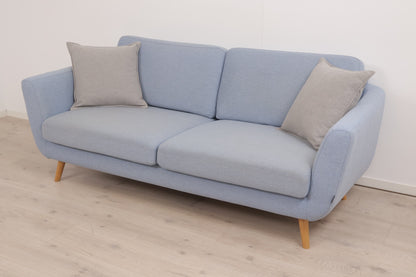 Nyrenset | Lys blå 2,5-seter sofa med eikebein