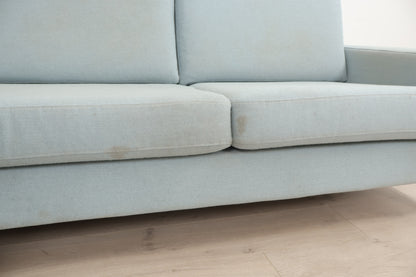 Vi dyprenser sofaen med Kärcher sine profesjonelle møbelrensmaskiner med nøytral og skånsom såpe. Hele sofastammen sprayes med såpevann som etter kort tid suges ut igjen.
