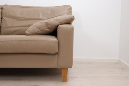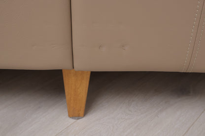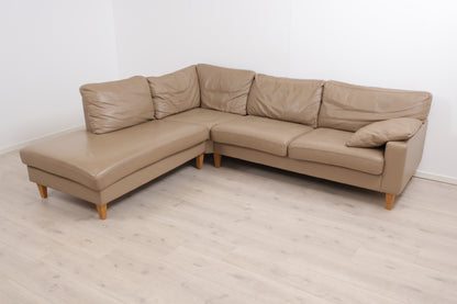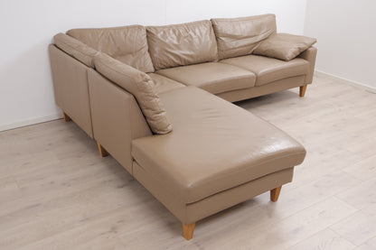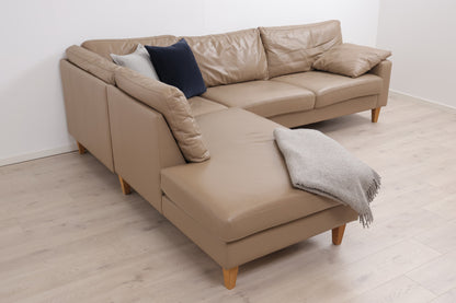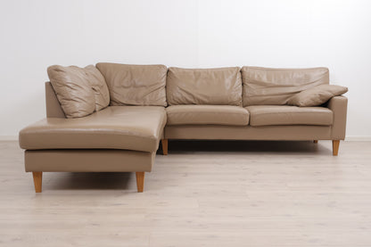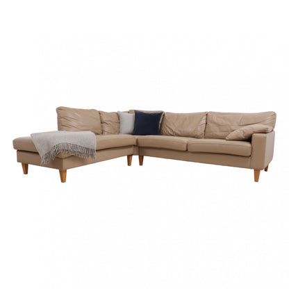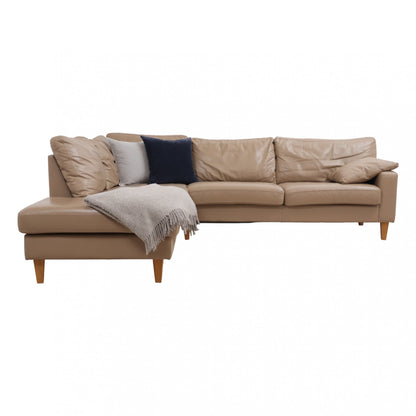 Nyrenset | Lys brun hjørnesofa med åpen ende i imitert skinn