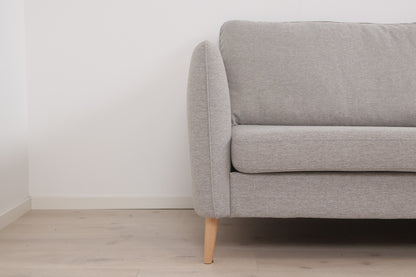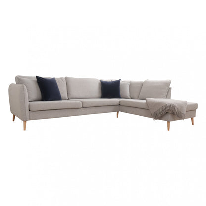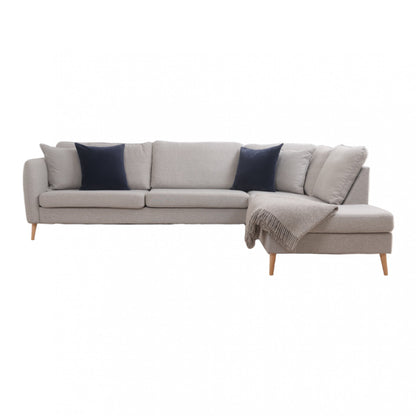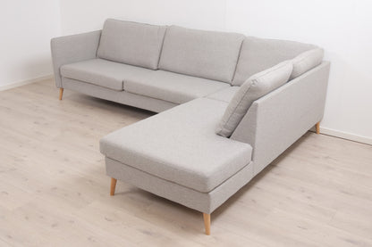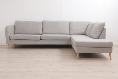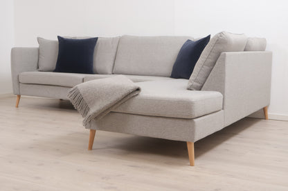 Nyrenset | Lys grå Aarhus hjørnesofa med åpen ende med eikebein