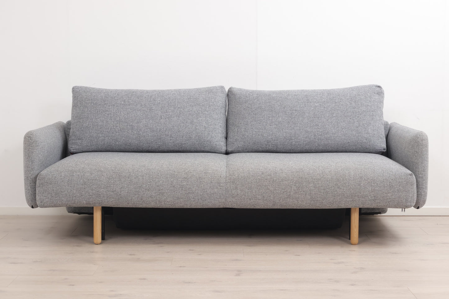 Nyrenset lys grå Frode 3-seter sovesofa fra Innovation med avtagbare/vaskbare trekk på ryggputene og armlenene. Sofaen fremstår som helhetlig pen med god sittekomfort og normal bruksslitasje. Det er et par bruksmerker på armlenene og sitteputene som vises på de siste produktbildene. Sømmen mellom de to sitteputene viser tegn til slitasje, men er fortsatt intakt. Ellers i fin stand. Renset og leveringsklar.