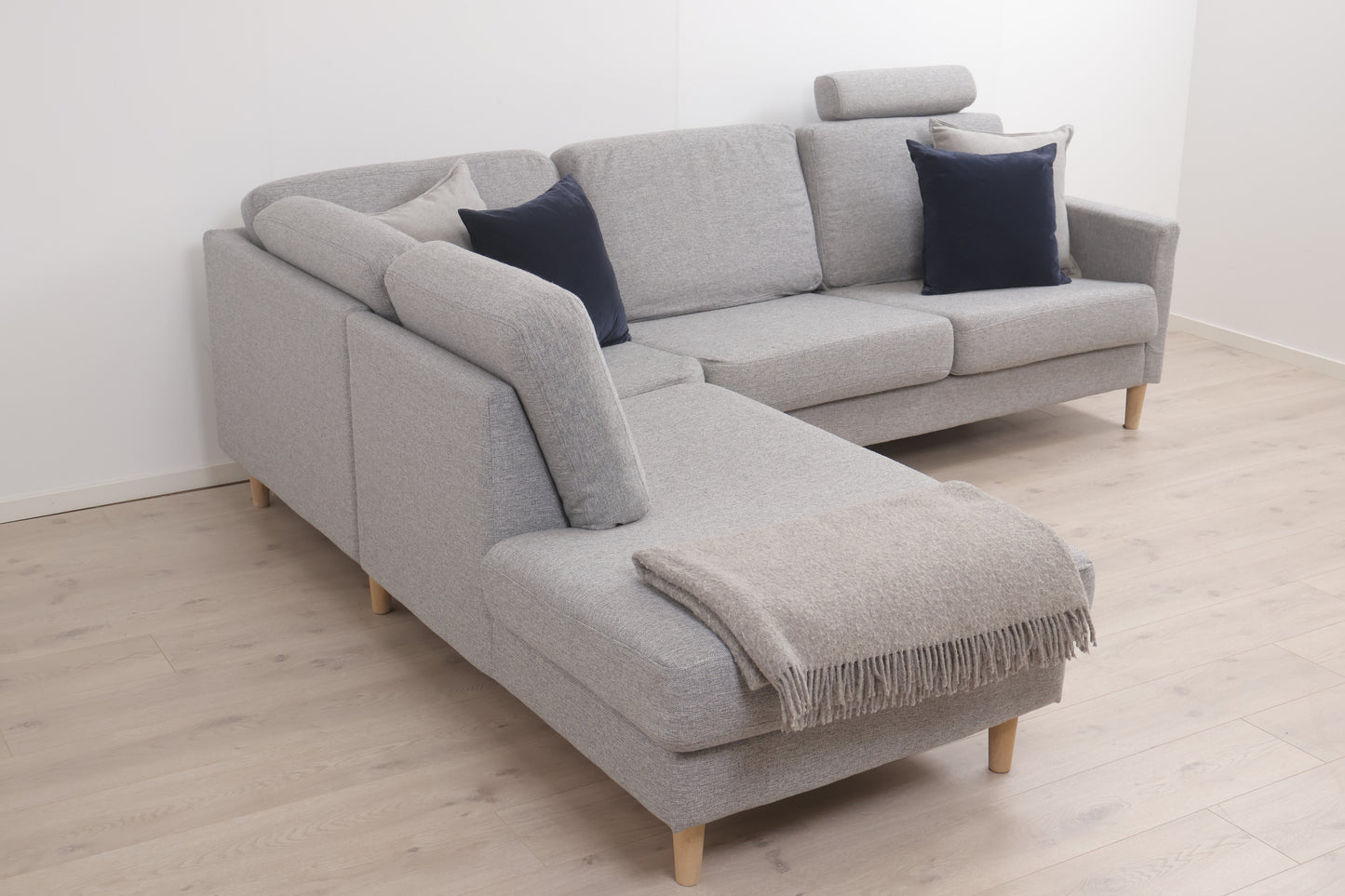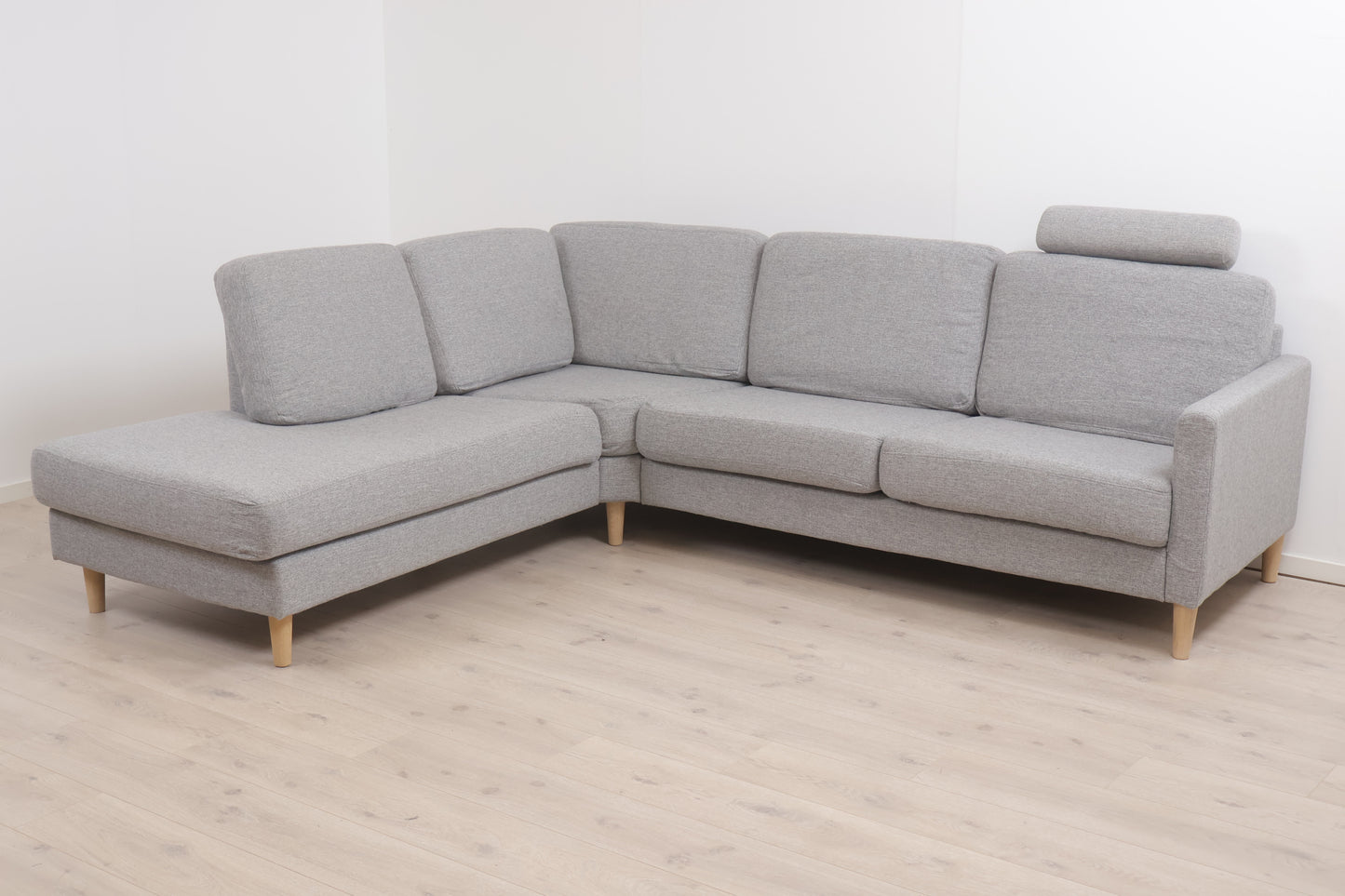 Nyrenset | Lys grå Hedda Fagerheim hjørnesofa med eikebein