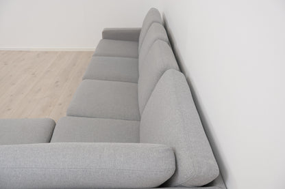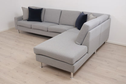 Nyrenset | Lys grå hjørnesofa med åpen ende