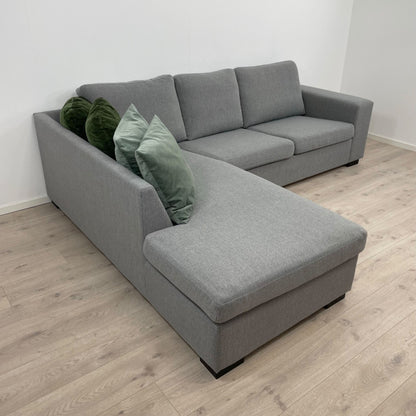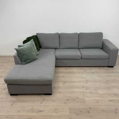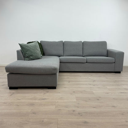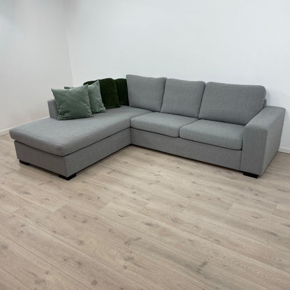 Nyrenset | Lys grå hjørnesofa med åpen ende
