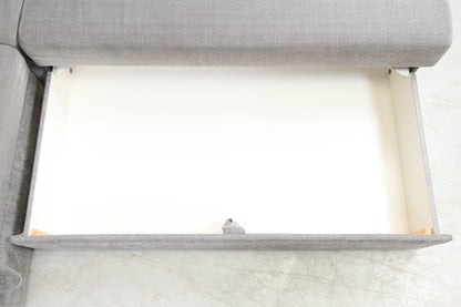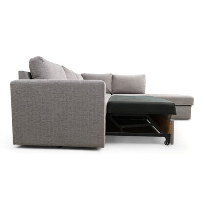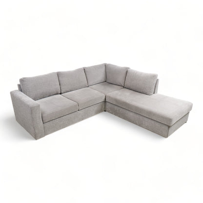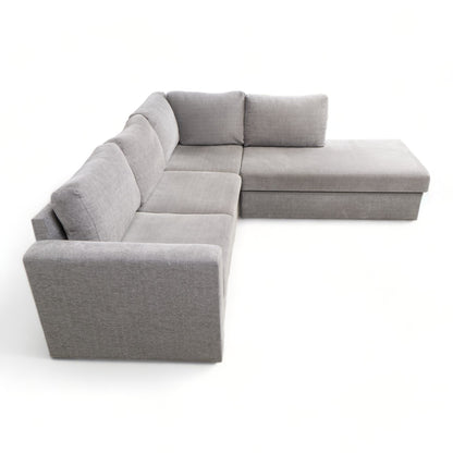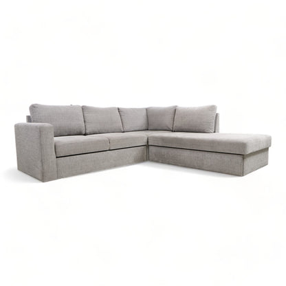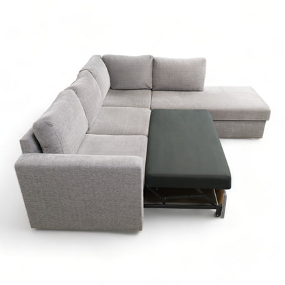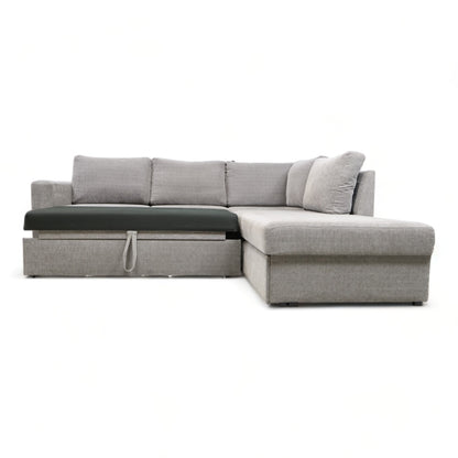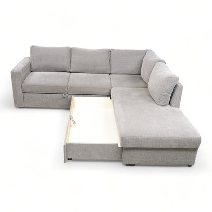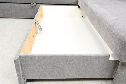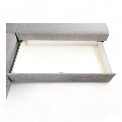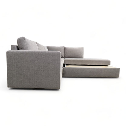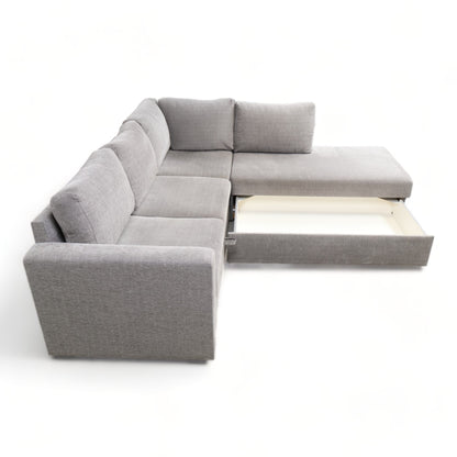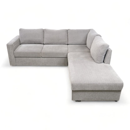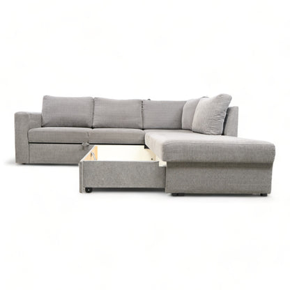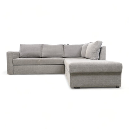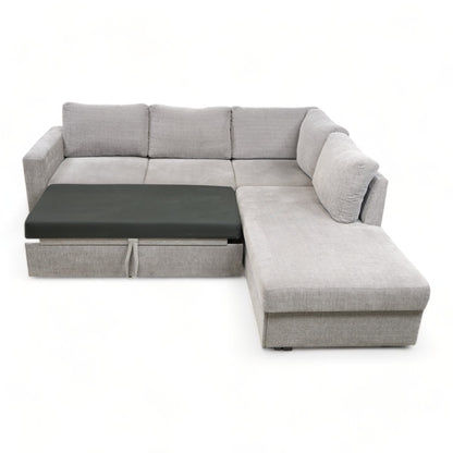 Nyrenset | Lys grå hjørnesofa med oppbevaring og sovedel