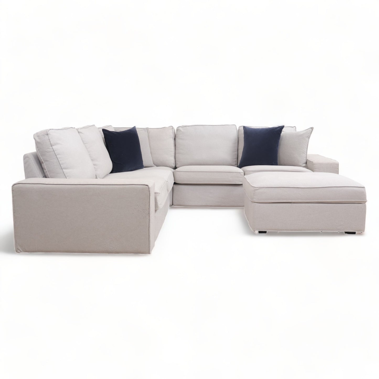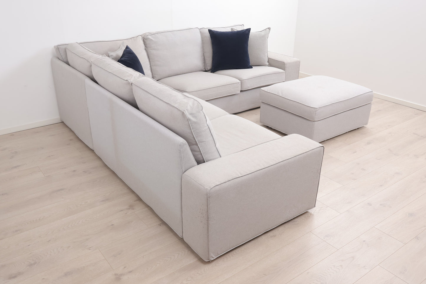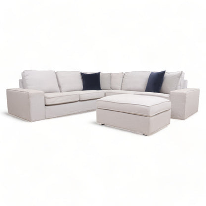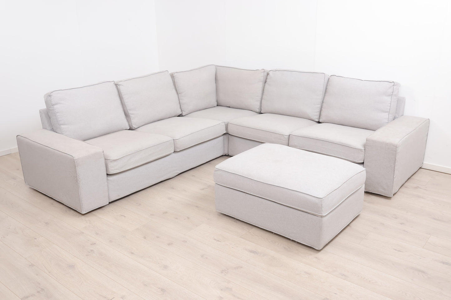 Nyrenset | Lys grå IKEA Kivik hjørnesofa med puff